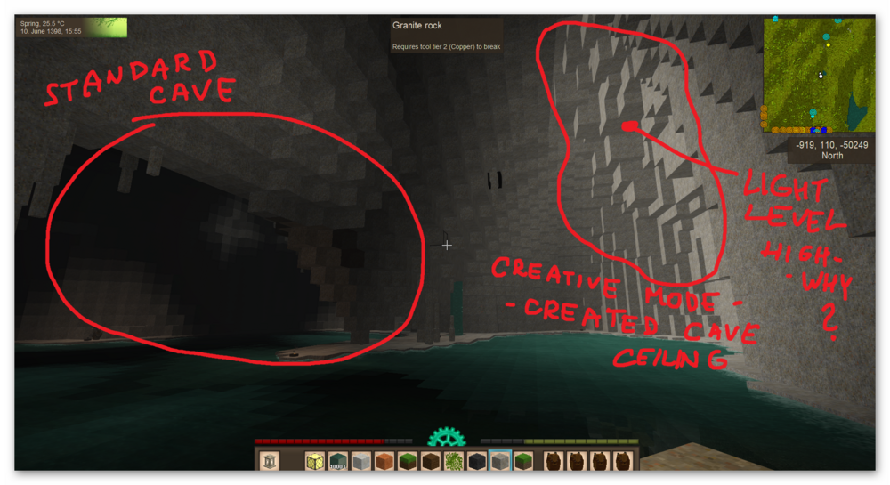 I was in doubt a long time whether publish it or not. One reason is overall positive reactions to new version. The second reason is I don't want to be much negative about VS cos I highly appreciate Tyron and others developers work. I'm a long time player of VS (our 15000 hours MP world). I've found a lot of fabulous places, amazing mountains including huge caves, flooded valleys, great landscapes. I play new 1.18 RC. I've played it a lot of hours in creative mode using fast fly speed to see a much as possible landscape in a short time. And I should say I'm disappointed: - landscape forms are very clean mathematical geometry like; it seems like charts / graphs; terrain is missing some unevenness/irregularities; more and more I've found these I'm more and more frustrated; - landscape is missing solid/undivided mountains (many of them are cut to "pieces"); if some is solid/uncut they are missing caves; - landscape is missing huge interesting caves; I've uploaded some examples to demonstrate my findings: - new generator (geometric shapes of landscape) https://we.tl/t-NqOtekQrh7 - old generator (fabulous places in old version, that I'm not able to find similar ones in new version) https://we.tl/t-RXkysUUSav I'd like to see that I'm wrong and new terrain generator can produce amazing places like in old generator. But I haven't found it in new version yet.... :-((( What do you think?