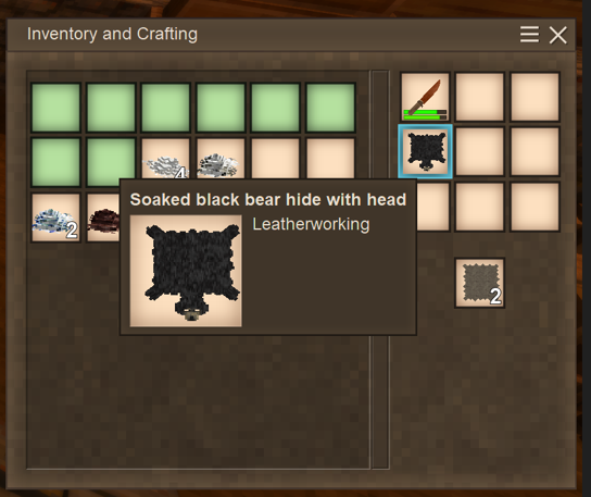 You can remove the head from the bear hide with a knife in the crafting grid, but if I understand this correctly, this just deletes the head. If you want to turn it into bearhide armor, you have to cure it with fat first. Leather armor is generally better because it is also repairable. You can also (i think?) throw the whole bear hide into a barrel to limewash it and it will come out as a prepared, headless, huge hide.
