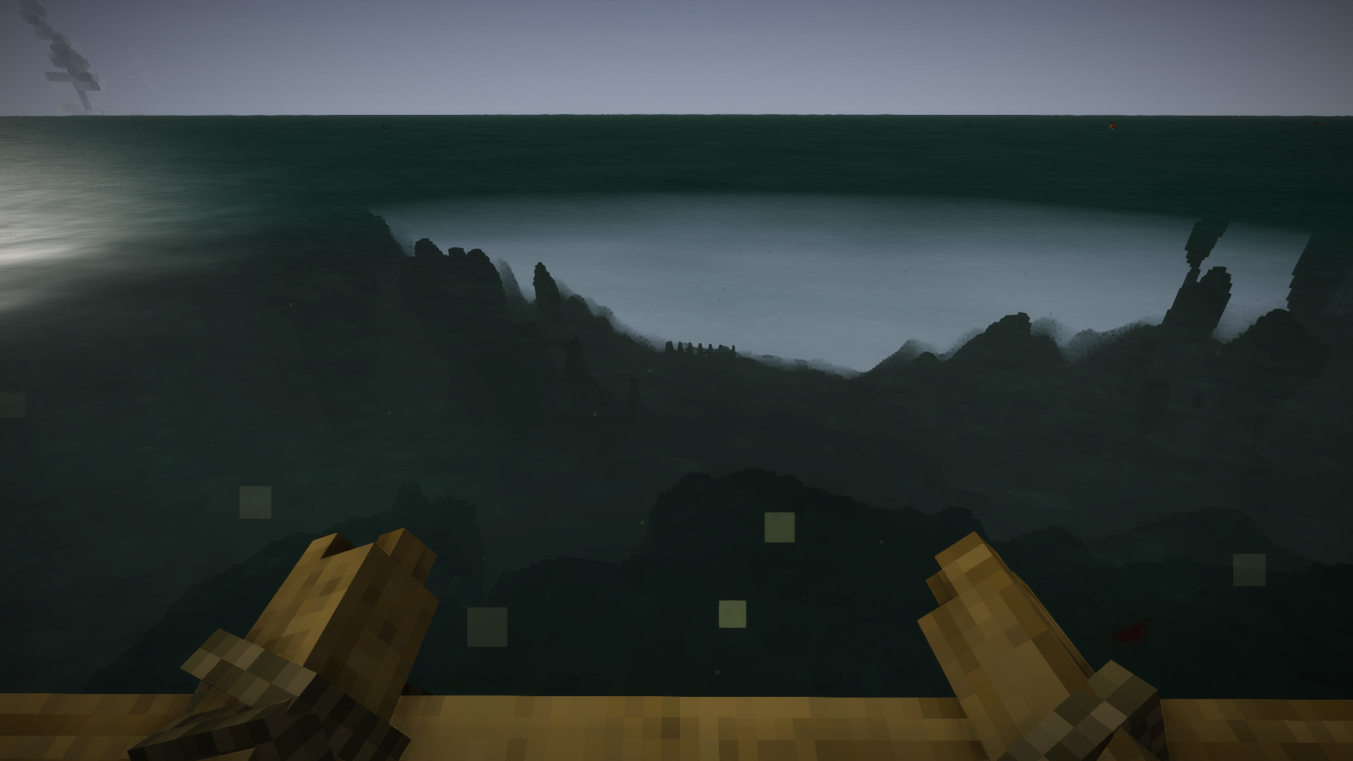 how would i sink a ladder? Build a floating dirt-bridge from the island, then make a dirt-pillar down a few blocks, and attach a ladder to it? Not entirely sure what you're saying here sorry.