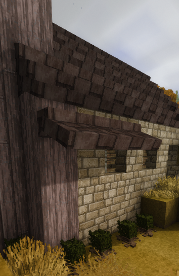 Also, there are no outer corner eaves, so for my tower with a hipped roof, I had to use full-size blocks as an overhang, because there were no outer corner eaves to match the regular ones (not that the regular ones line up anyway).