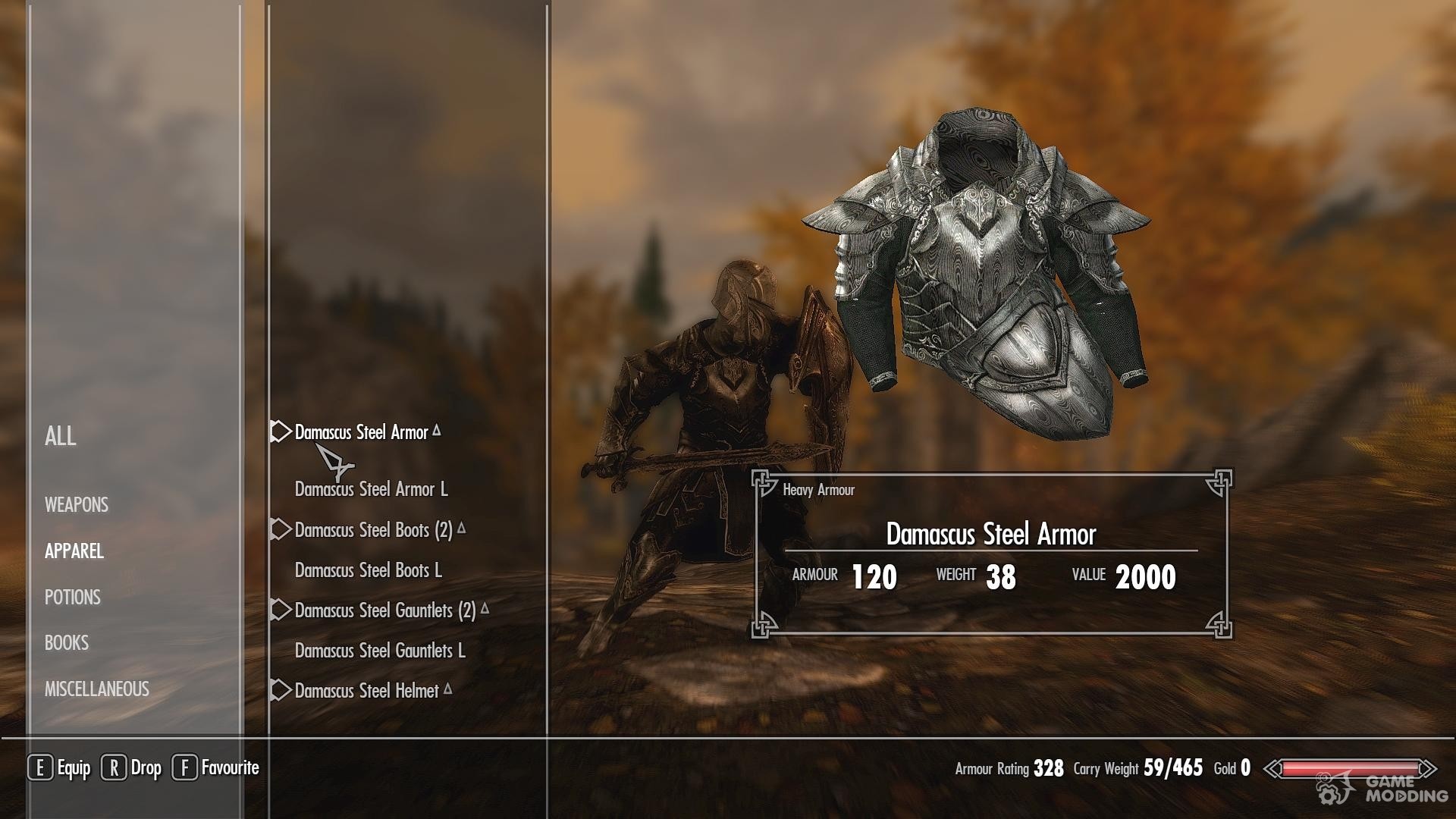 This skyrim mod illustrates the concept for armor using this damascus ingot/plate/chain, but in VS it will have the meteoric iron white with its charming spots/sprinkles trough it.