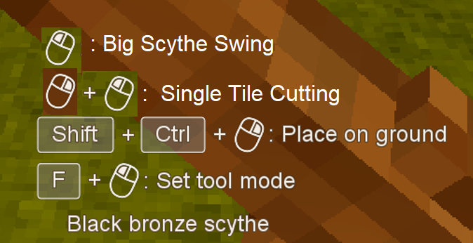 It IS rather silly that the Scythe will automatically do something the human dont intend. But that does not mean that using the Scythe should magically avoid plants on swings. My solution: [Holding Scythe] Hold Right Mouse button and Click Left Mouse button to do Single tile Scything. Now WE are in full control of the Scythe. A had to remember how they worked, I think this is a great compromise because to be fair the Scythe does not tell you what it does on the prompt, I would change it like this. @ijkdenem what do you think of this idea, then it wont be automatic, you just have to remember and consider when to use the Big Reap Swing vs the Single Tile Cutting. Its easy to be a game designer when you don't have to do any of the programming, animation, etc. but I actually LOVE the idea of Tools having multiple options. not just tool modes.
