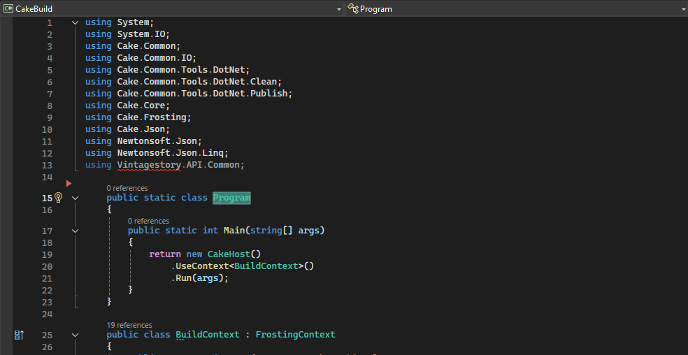 The errors all refer to "error CS0246: The type or namespace name 'Vintagestory' could not be found (are you missing a using directive or an assembly reference?)"