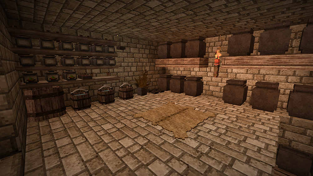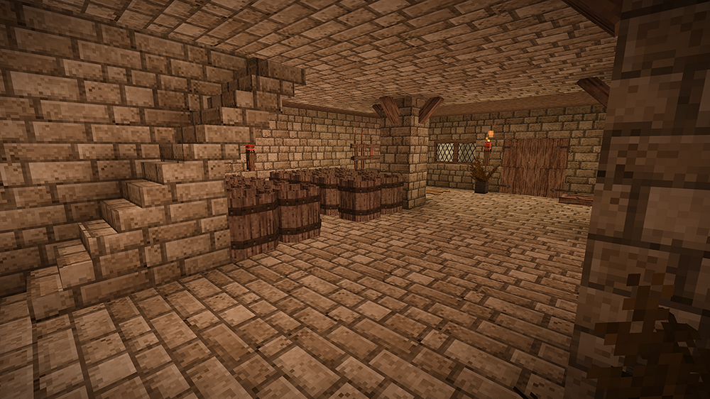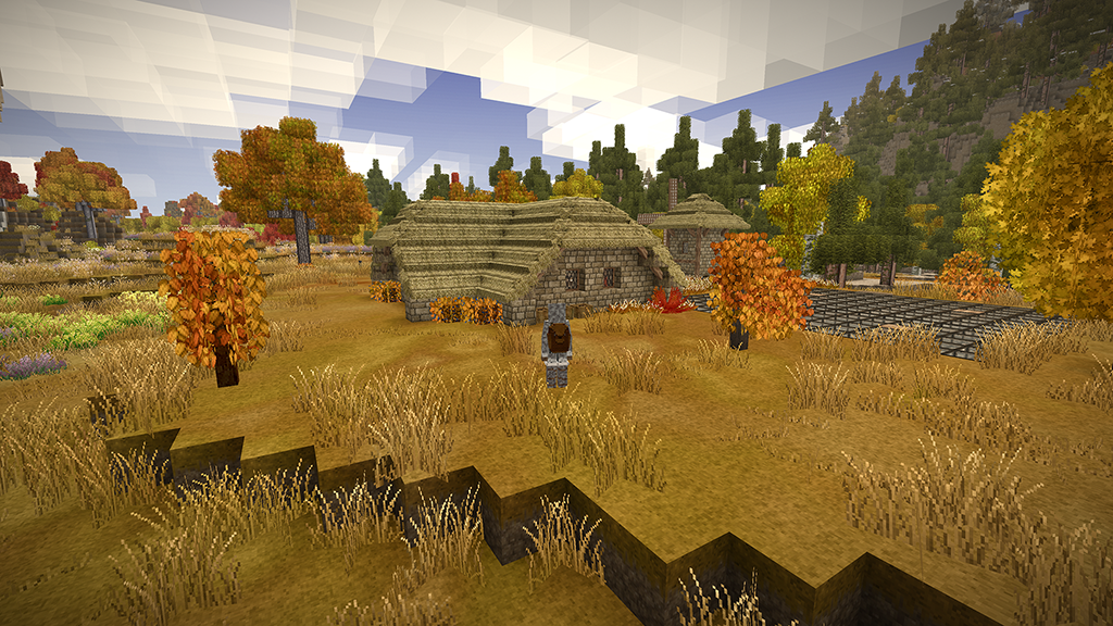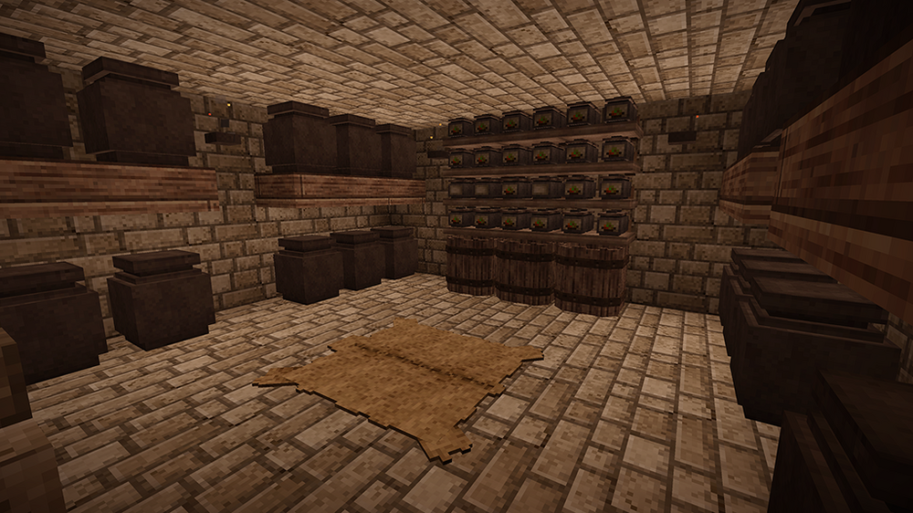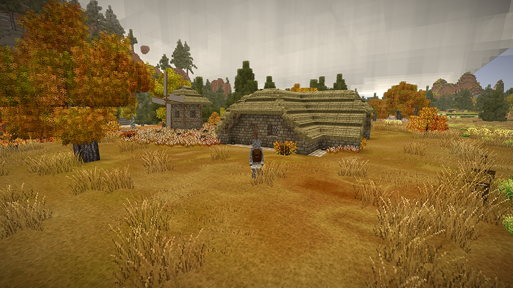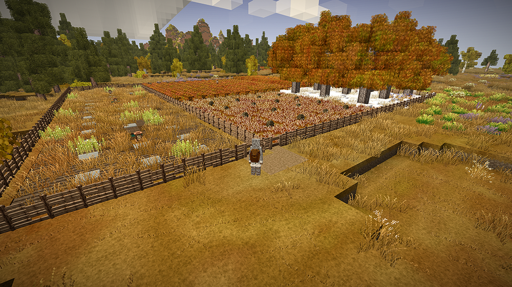 2. After two in-game years I proudly present my humble home. I started several games until I spawned on a spot I liked. A nice open plain, with some fertile woods surrounding it and a lake nearby. After spending far too much time getting food supplies (I still haven't reached the end of my first batch after my second winter), I was looking for a perfect location for my house. I wanted to overlook the plain, and be on the edge of the forest. As you will see, I put most of my rooms and structures underground or farther off. The house should fit naturally in its environment. I spent a bit in creative mode to figure out a nice house design which I then built in my main game. In the end I think I found something that looks cosy both from the outside and inside. The main room above is mainly decoration (with a torch acting as a "fireplace"), but with ample storage space as well. Underground is my workshop, kitchen and storage area. The cellar is on two levels as well, with long-term storage underground (and before you point it out: The wooden slabs are actually light mudbrick, chiselled to have a wooden front). So far I have 7 vessels full of grain, 9 full of vegetables, 24 blueberry jam and 24 other sealed crocks with veggie and meat stew. Of course, I also have a selection of cranberry and blueberry wine. My pigs and chickens are generation 3, the ewe is still generation 0 as the first lamb was a ram. We'll get there. Apart from that, I was lucky enough to find an iron vein close-by, so I progressed to iron tools. So far, I'm not interested in steel. Outside you see my two fields, one with blueberries and cattails, the other for grains and veggies to complement my greenhouse, as well as a large beehive, some cranberry bushes and a walnut orchard. My house is also surrounded by some walnut and various other fruit trees. I think I did everything I wanted to do in the game, and more. Cheese was still on my list, but I guess I'd have to wait a few generations for that. Anyway, hope you enjoyed my pictures and my short sum-up