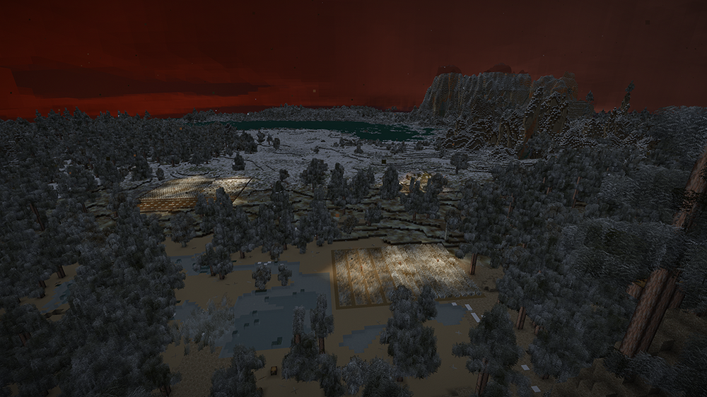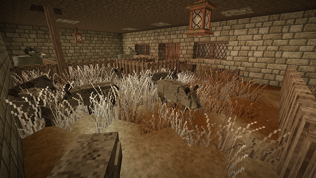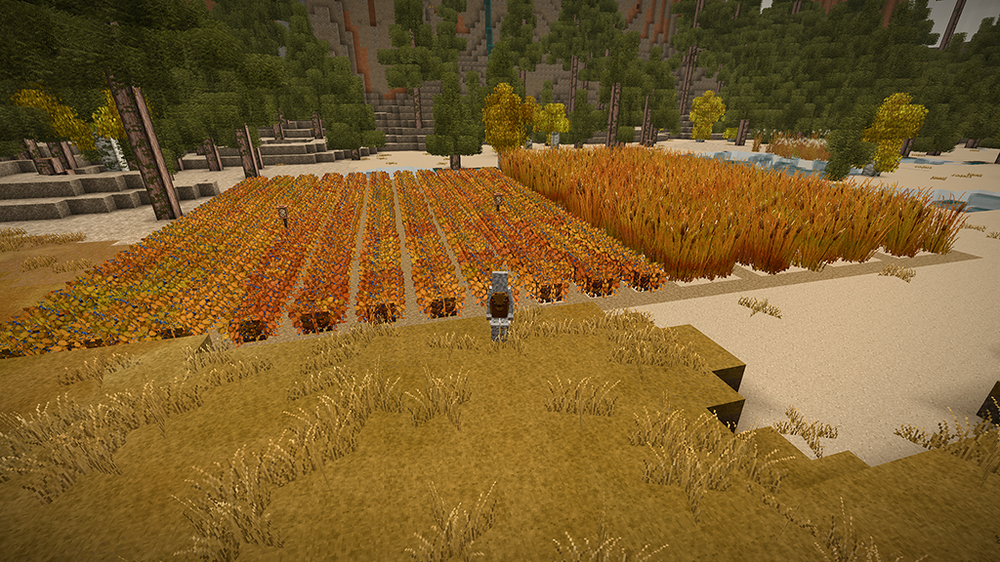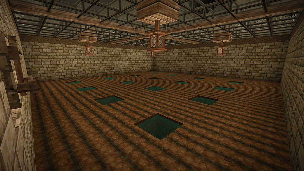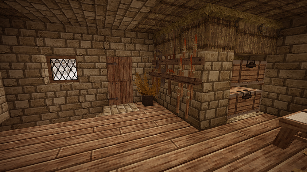 2. After two in-game years I proudly present my humble home. I started several games until I spawned on a spot I liked. A nice open plain, with some fertile woods surrounding it and a lake nearby. After spending far too much time getting food supplies (I still haven't reached the end of my first batch after my second winter), I was looking for a perfect location for my house. I wanted to overlook the plain, and be on the edge of the forest. As you will see, I put most of my rooms and structures underground or farther off. The house should fit naturally in its environment. I spent a bit in creative mode to figure out a nice house design which I then built in my main game. In the end I think I found something that looks cosy both from the outside and inside. The main room above is mainly decoration (with a torch acting as a "fireplace"), but with ample storage space as well. Underground is my workshop, kitchen and storage area. The cellar is on two levels as well, with long-term storage underground (and before you point it out: The wooden slabs are actually light mudbrick, chiselled to have a wooden front). So far I have 7 vessels full of grain, 9 full of vegetables, 24 blueberry jam and 24 other sealed crocks with veggie and meat stew. Of course, I also have a selection of cranberry and blueberry wine. My pigs and chickens are generation 3, the ewe is still generation 0 as the first lamb was a ram. We'll get there. Apart from that, I was lucky enough to find an iron vein close-by, so I progressed to iron tools. So far, I'm not interested in steel. Outside you see my two fields, one with blueberries and cattails, the other for grains and veggies to complement my greenhouse, as well as a large beehive, some cranberry bushes and a walnut orchard. My house is also surrounded by some walnut and various other fruit trees. I think I did everything I wanted to do in the game, and more. Cheese was still on my list, but I guess I'd have to wait a few generations for that. Anyway, hope you enjoyed my pictures and my short sum-up