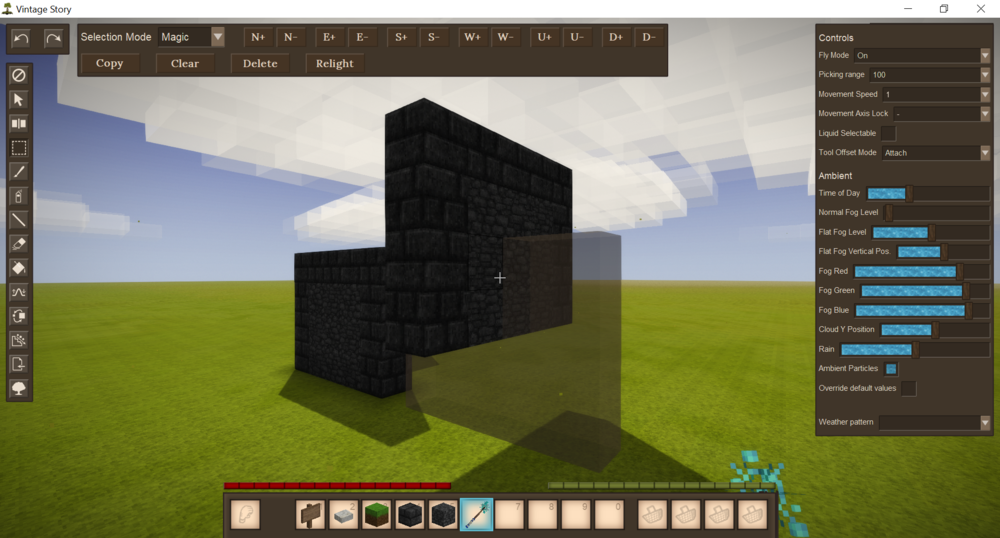 Okay, I've gotten more adjusted with the system, but It's still awkward to use at best (still not sure everything is intended to be the way it is). Tyron, it would be cool if I could 'tab-complete' coordinates that I am at or looking at and also an offset argument when pasting a selection. Controlling the anchor point for rotating a selection would also be appreciated, but I could live without it. All in all, don't get me wrong, I am very grateful for the amount of WE tools included. the amount of built in tools is such an awesome part of VS. I really want to make some incredible things, I just feel like there's a lot of extra effort to accomplish normally simple things in voxel editors, making things for VS feel tedious or discouraging.