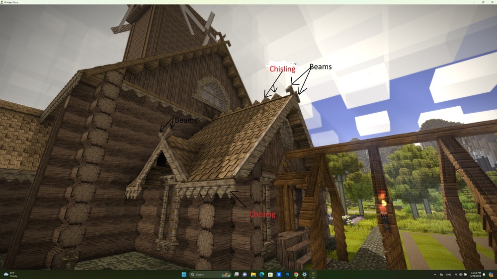 I use kapok roof (on picture) from MoreRoofing Mod. Other element i got using a chisle and Chisletools Mod
