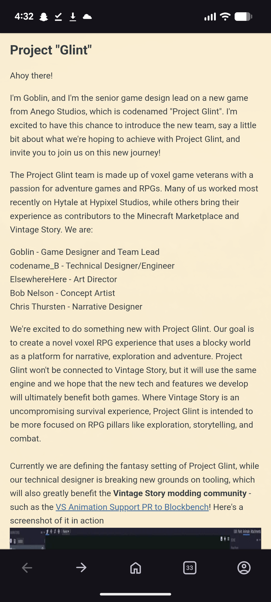 Absolutely! And, (the nature of this thread being a criticism, there are so def positives) I don't want to overlook that. That's awesome and I wish the best for the project. I'm just starting to get like a smash bros feeling, if you notice there's an Easter egg gif at the bottom hidden in the like button bar. We see a creature from that universe here. The more they start to mix that universe with this one, I'm just personally going to be a touch annoyed. I realllllly like VS and it's feel, and I don't want to start to see a growing amount of advertisement or media from Glint when I'm looking at VS content or software. I think it's totally cool to mention your other projects or even hide Easter eggs in a VS development update, that's really neat. I just think, the more Glint becomes its own thing, it should uh, become it's own thing. Like, own website, own news updates. Now again I don't think it's going to hurt vs development anymore, it's now more, please keep your fantasy RPG game seperate from VS in the future. Please, like do what Mojang did and just mention it in the client on startup somewhere for awhile and phase it out or something. Or small additions to vs updates or seperate news updates altogether. Not like, 70% of a forum body that's literally a major future update for VS ahhhhh This is why people were upset before because it gives off optics. Idk what optics but it's odd ones to a lot of people, for me I'm not so intense as some, but I do think it could be delivered better. Imagine if the VS update was mostly that, and they vaguely updated us in Glint, and we had to look for that little guy. It would be so much betterrrr GOOD TO HEAR!!! I'm excited to see the new website. Now someone hurry up and get hired and teach em how to do a cliffhanger!!! I do realize there are some constraints before the website opens but pleeeease just post it as it is. "Development update", bruh just name it what it is! It's a Adventure Mode update that was put on the bottom of a dev update for VS.