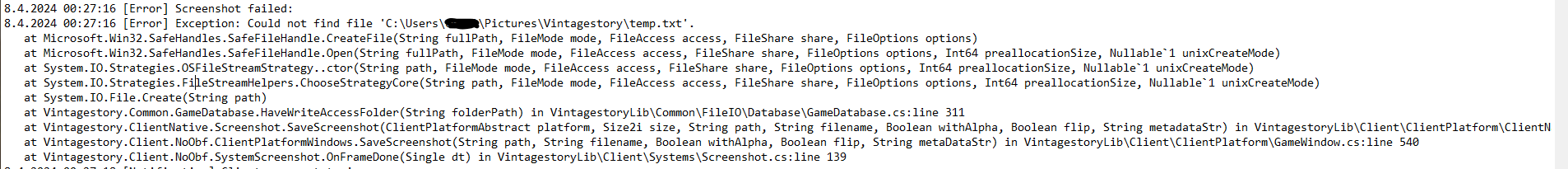 Edit: Yeah - I had to allow Vintage Story through "Controlled folder file access". I guess I should feel grateful that Windows has this feature. Thanks for the lead! Screens are working fine now!