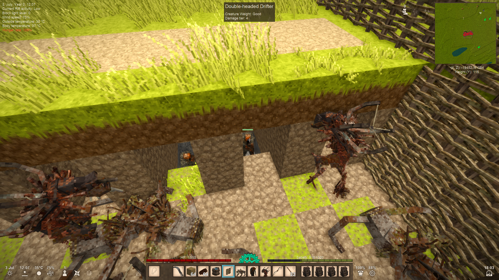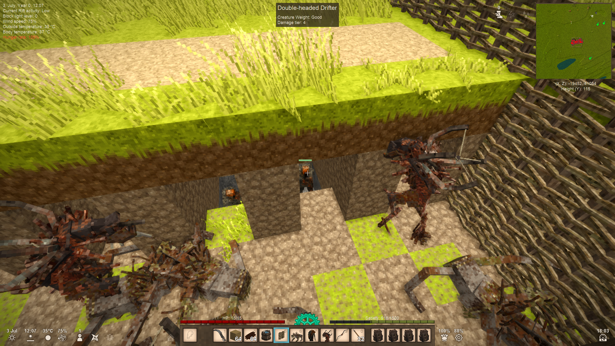 the mobs have 2 ai pathings that are trappable. pursue, and wander off. in testing what i'm seeing in a fenced in area (20x20), the shivers will wander into the corners against the fencing. digging pits 3x3x3 will trap them. bowtorns will evade to the fence perimeter and 1x1x3 can trap them. Drifters that wander off, will also fall into the perimeter pits and would need further filtering the 20x20 fence perimeter was just an arbitrary size for quick testing. not sure what the best area fenced in will work. and still haven't addressed harvesting the trapped... (not noticing the mobs climbing over the fence)