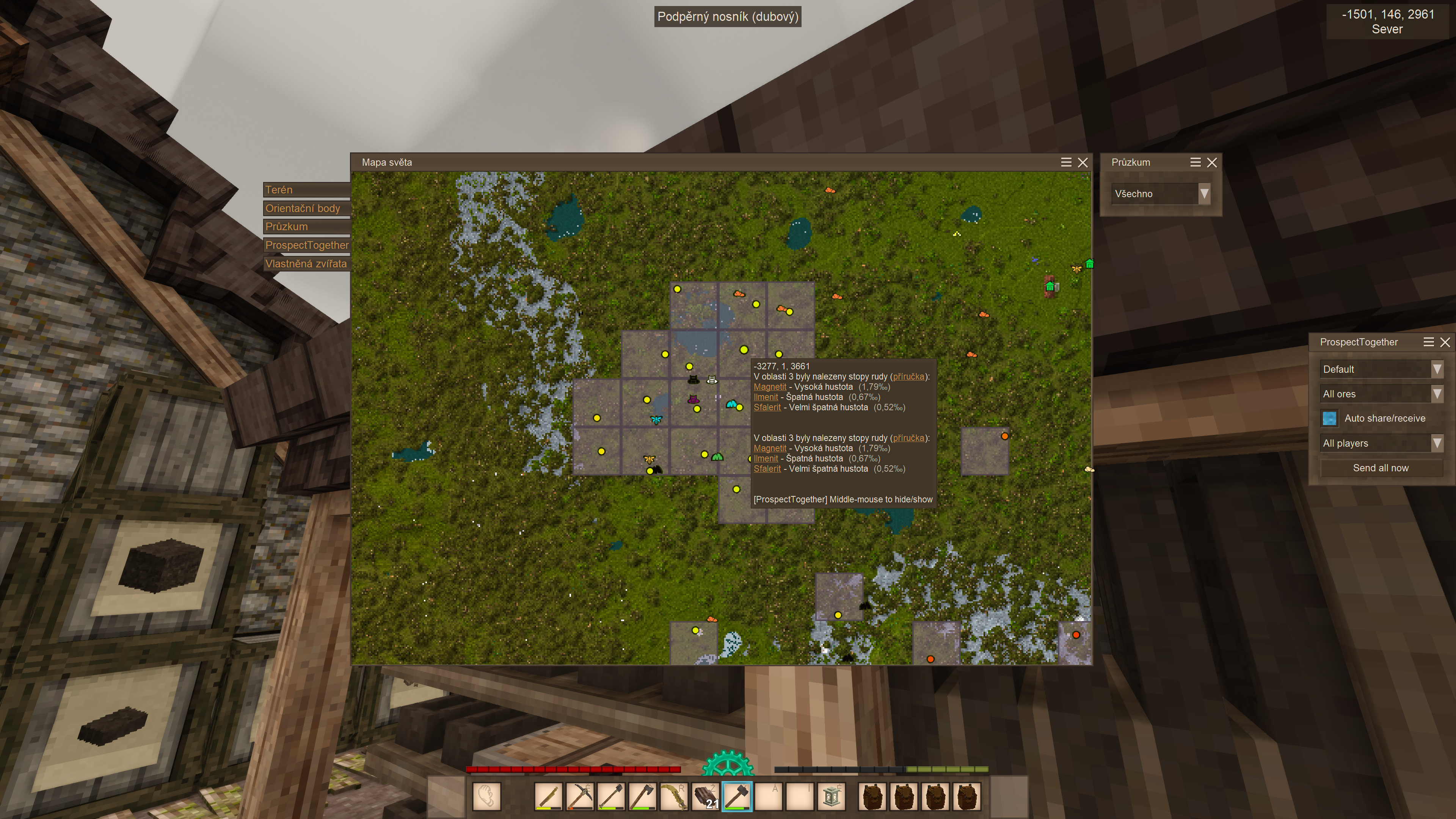 25. As the title says, it would be great if prospecting probing was shared between players so one player can see that there is already prospect being done so the world does not become full of holes on same locations.