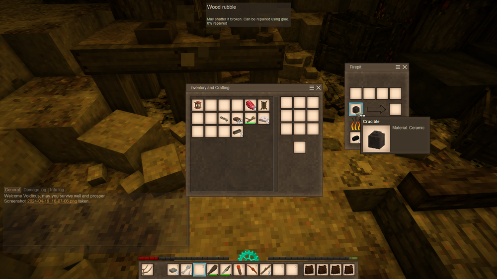 As you can read from the title, I cannot put copper bits in the crucible in the campfire. I did it once, worked just fine. Now, I cannot use it. I've tried relogging, I've tried making a new crucible, new fire, different ore bits, everything I can think of. I Literally cannot progress further due to this bug. Any help would be appreciated