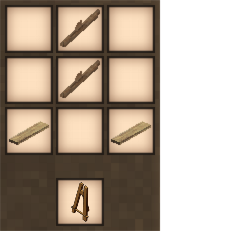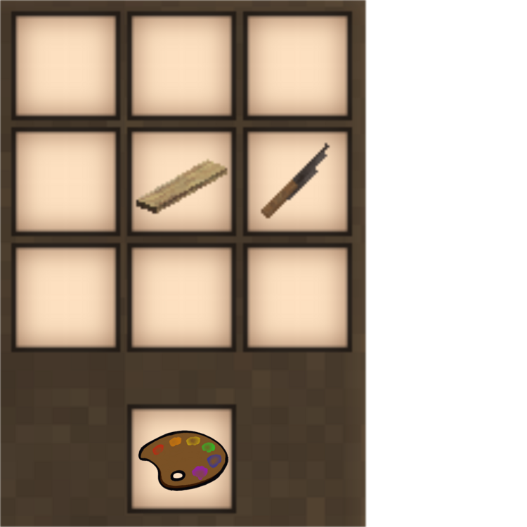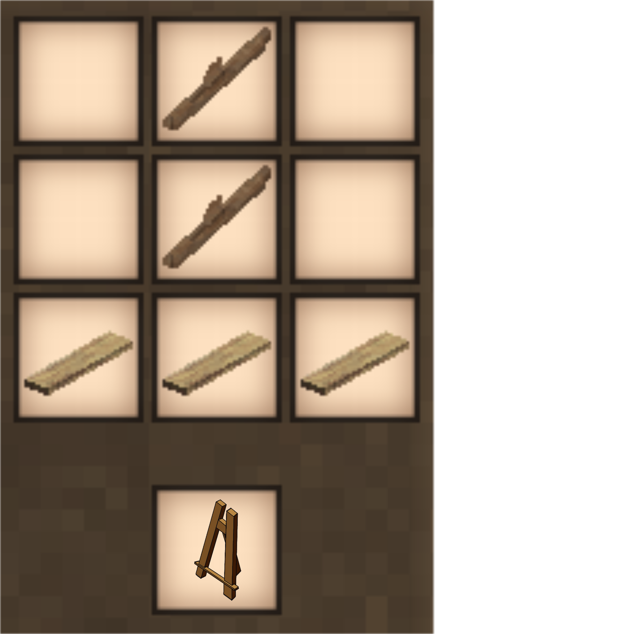Hello again, i just had an idea and thought it would be neat if it was in the game. Basically, it would be really cool if you could make your own paintings in Vintage Story and hang them up around your house. I thought a little bit on how it could be implemented and came up with a few things. For starters, to truly create paintings i think you should first get to the copper age, since in my mind the ability to create the tools necessery to make paintings should be looked behind progression for a little while. Then, the first thing you would probably create would be the canvas itself. There is already a mod out there that allows you to make canvases, however, as far as i understood the mod it doesn't allow you to actually make the images in game which i think is very importent for immersion. The recipe is the same though, four boards and one linen in the middle: At this point the canvas can be placed vertically on a wall or on the ground next to a wall, but when you try to paint on it, it will be unstable and regularly just collapse and turn into it's item form again, like the crude door. This doesn't happen if you put it horizontally on the ground, but obviously it will be a little weird to constantly be looking down while painting something, especially if you are trying to recreate something through in game inspiration, like a landscape you found on your travels. To actually paint though you will need a brush. The brush can be crafted by combing a stick and some flax twine with a knife in the crafting menu (the knife is there because i thought it makes more sense to first have to cut the twine into bristles for the brush): At this point you can start painting, but it will be a little annoying since to you will basically have to paint near barrels of paint. I thought of a solution for this though (well, i applied a solution from real life is more correct). An palette or tray (that's what google said. Is that what it's called?). You can get some paint through any vessel, be it a bowl or a ... the other thing you make with clay (i forgor) or a bucket and within you inventory simply click right or left click, like with the cooking pot to put paint on it which will be shown when you hover over it with the mouse. The crafting recipe is simple enough, just needing a wooden board and a knife to it's right: When painting you just put it in your off hand and the brush in your main hand and when pressing F, like you do for clay forming and smithing, you can chose the colour you want to use and also see how much of it you still have. And now for the final thing, a way to actually put up paintings so you don't have to paint them on the ground or have them constantly fall over while trying to paint on them: An easel! I haven't quite figured out what crafting recipe i would like for the easel. These two are quite similar and don't rquire many resources: The easel i drew isn't quite of the easel i thought of when i made the crafting recipe, but the thing is, when typing easel ... there are so many different kinds of easels. I feel like sticks and boards being interchangeable in this recipe is better than adding a thousand different kinds of easels but something i would like to add would be the need to use nails and strips to make them or resin or wax. Just something that actually holds it together instead of it just working. Maybe two? One in the centre right and on in the centre left? (Small addendum: Maybe the canvas should somehow use nails and strips too since in real life the piece of cloth used to make canvases ... canvae ... whatever, is normally nailed to the boards but i feel like that would make it too expensive?) You can then simply take a canvas and put it on the easel with right click and then continue painting with the other utensils previously described, this time though at a nice height without the fear of it falling over. There is one thing i didn't bother drawing or making the recpie for, but historically there have been some huge paintings. Since i don't want the paintings to actually be a full-sized block i wanted to add the possibility of making bigger canvases. By simply putting two small canvases next to each other in the crafting menu you can make one 1 x 2 canvas or one 2 x 1 canvas, depending how you put them in the crafting grid. You can do that again to get everything from 4 x 4's (maximum for now) to 2 x 4's or 4 x 2's by combining them in a way that makes sense. I'd say the amount of pixels on the canvas are the same as regular chiselable blocks in the game, but i don't remember how paintings you can buy from traders look like so if they use more pixels, well, then that. And when pressing f you should get the option to increase brush size. Well, that or more brushes and other utensils but i couldn't be bothered to make more than the base necesseties. Japp, that's it, my idea. I don't know if it was worth to draw the PNG's of the utensils and stuff for it but hey, it got me drawing again :3