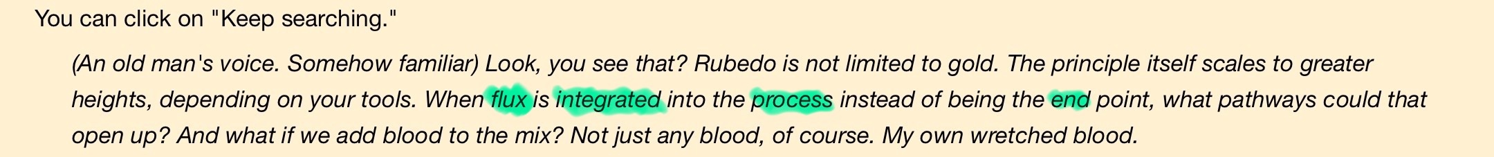 You know, this kept me thinking a bit. I don‘t know if the teal coloured stuff has a name yet, neither do i know if we (sort of) know how it‘s produced, I’m not yet that well versed in VS lore, but i noticed one thing while listening to the resonator within the Resonance Archives. There was a bit of dialogue where someone talks about Alchemy and Rubedo and stuff and this person mentions a theory where they believe that „Flux“ could be used within the production of something instead of being it‘s end point. Flux, as commonly used in Sci-Fi and Fantasy, has to do with time stuff, like time travel. I believe that the teal coloured stuff that powers Falx constructions is called Flux and taken from the recording within the archive i believe that it is formed out of the alchemical substance Rubedo. One point that adds onto my believe is that there is a Jonas part, mainly used for teleportation devices, that is called a Flux gap connector. This Flux gap connector looks either like a light bulb or like a tube that could possibly hold a certain teal coloured liquid. I also have a weak theory about the glow worms that you can find in the depths being related to or actual part of the creation of what i for now am calling Flux. It‘s weak because i looked at their colour and thought „Kind of looks similar.“ … That‘s it, i can‘t support it further. :3 Anyways, this had nothing to do with the original topic but whatever.