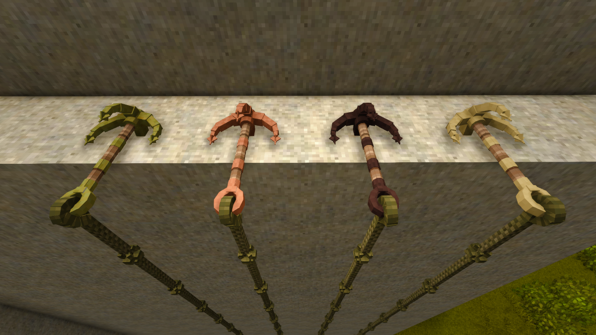 Here you go I will be packaging and pushing this one along with a bunch of others after they finalize the official release. But you throw it, it requires you make lengths of knotted climbing ropes you cast them from copper or bronze in their clay molds, they have normal tool durability, my model is a little off right now and there's a coupe little tweaks and issues but it totally works and I'm playing with it regular use already. Always looking for comments and suggestions Talk about it on Discord
