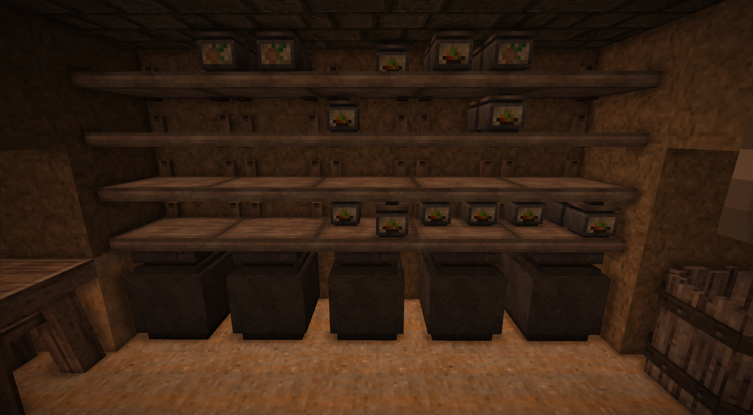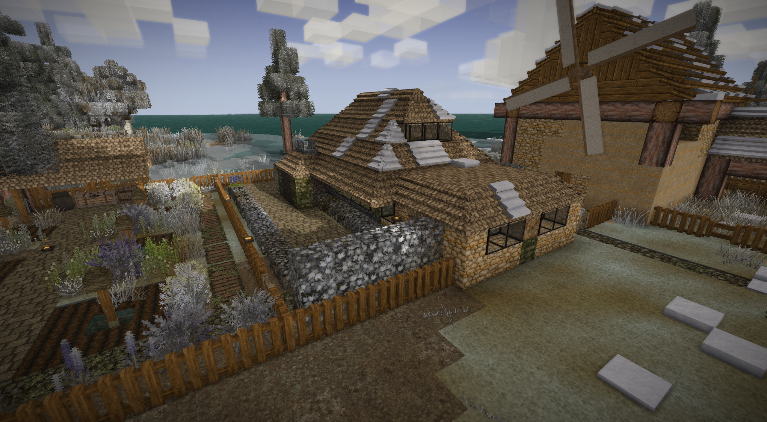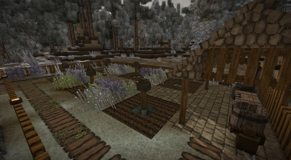 This will be my second winter in this house, after having tried to move south to warmer climes and being forced to settle as winter overtook me. Progress has been slow given a general lack of metals, but I've gotten a good push lately and I'm hoping to find some iron before my bronze reserves run out. I had a good harvest despite my mediocre soil fertility, thanks to bonemeal and just... So... SO many wolves. Combined with the salt dome I found, food is no problem this winter (last winter was a mostly wolf based diet). It's not as fancy as some of the things I've seen you folks build, but I'm pretty proud of it regardless