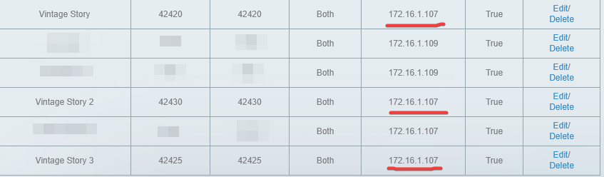 Also double check that with your port forwarding, that your device's IP hasn't also changed on your internal network behind your router. For example, I gave mine a static IP address at the router so no matter if there's a power outage or something happens it gets 172.16.1.107 as the internal IP. So then I can just set my router to push all traffic on 42420 to that IP instead of having to guess or worry that it might change. Your router interface may vary, but this is how mine looks: These are all internal IP addresses so I don't have to worry about someone trying to browse to my internal network machines. LOL Then for the port forwarding, I have it setup so that all the Vintage Story traffic goes to the serverbox.