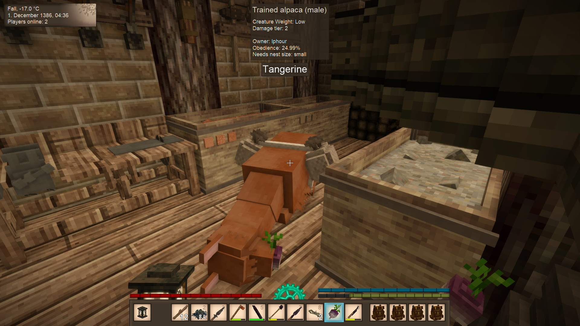 A break during the construction of the inn. The finished Inn and Explorer's Guild. To the left of it, TomOmbre's home and storefront. A modest public smithy PennedGalaxy's home Throwback Thursday: the admin's depressed alpaca. RIP Tangerine