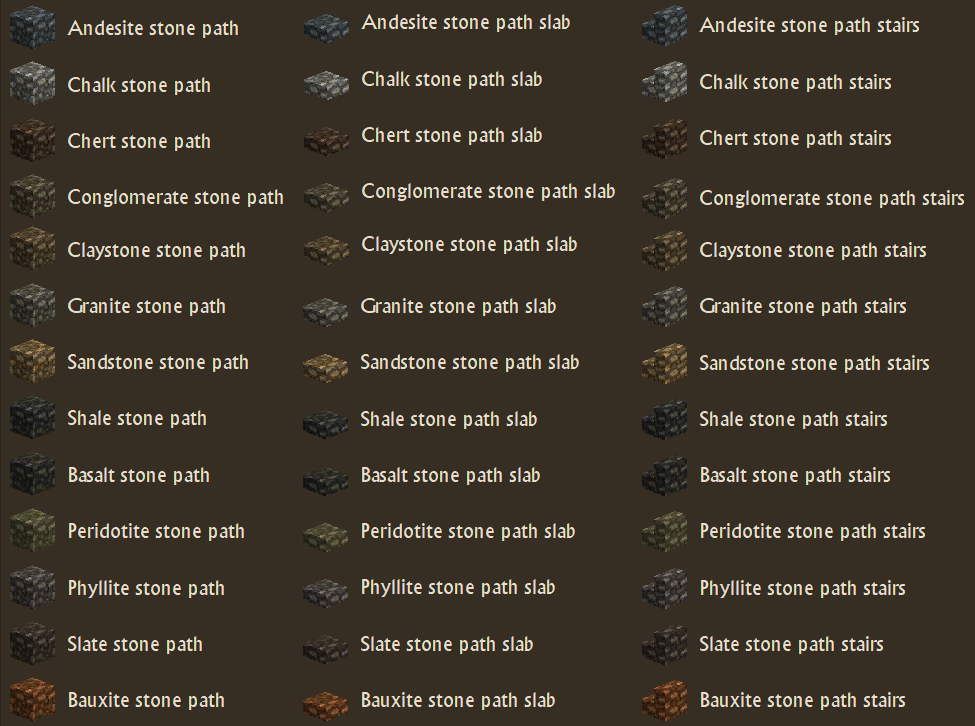 One of the very few things I quickly found was missing from the game was the ability for Stone Paths to maintain their color. But at the same time, I'm glad the standard version was set in place from the start. For those who also find the Stone Paths to be a bit limiting, I've devised a solution. When using Low Quality Soil, you'll get the same old roads that reduce down to being identical. I also removed the ability to use Terra Preta or Compost, which would be a huge waste of good resources. But now when using Medium Quality Soil with Stones, you'll get a nicely tinted version of Stone Paths. I simply took the original 3 Stone Path textures and Greyscaled them, then I overlayed the plain Rock textures of each kind of stone. This not only gave the color tint of each stone, but added bits of the stone's quality into the Stone Path. I set the Layer Blend Mode from Normal (Lighten, Darken, etc) to "Overlay" if you're that curious. The way it merged the textures was perfect for this situation. I've also upgraded them to have more variations of mossy overlays, making the repetition much less obvious. The most amazing part of this is that the game engine only required 3 versions of each type of stone, and then a dozen mossy tint overlays, it takes care of the busywork. And I could easily mix them up even further if I wanted, but it would probably take up too much texture memory to be worth it. Speaking of which, if you're running on a very old system with low GPU memory, theres a slight chance you might want to skip out on this for now. If enough people request it I'll make a Reduced Memory version, but hopefully it won't be needed. They will be compatible as far as local savegames, but you would end up with whatever version the server has provided they end up adopting this mod. So it's better if there's only one version anyway. I also made a slight increase in WalkSpeedMultiplier from 1.3 to 1.4, but other than that the blocks are identical to Stone Paths. This means they behave like Gravel rather than Soil or Cobblestone. I could adjust this, but it felt better to keep it as it is. Speaking of "style", as the title suggests, I've dug through countless fonts online and found one that works very, very well with the game's aesthetic. Take a look at the screenshots and let me know if you agree. Instructions below on how to install it. You can find this font I'm using in the game ("Albertus Medium") for free at https://best-font.com/font-download/download-albertus-medium-font.html Just download and open the TTF file like any document, and Windows Font Viewer has an Install button at the top. Then you'll have to open your VintageStoryData folder, which should be available by using the magic path "%APPDATA%\VintagestoryData\" instead of C:\ as usual. You can also just go to Start -> Run, and type in "notepad %APPDATA%\VintagestoryData\clientsettings.json", without quotes. Scroll all the way down to line 500, or press Ctrl+F to Find "font". Change the value of "defaultFontName" to "Albertus Medium" and close and save. You should shut down the game before doing this, otherwise your changes will be overwritten. Probably should have told you that first. I've been working with more and more ideas since I found Vintage Story back in early December 2020. I decided to keep them all to myself until I could post them all as quickly as possible. Basically this is my way of celebrating my mother's birthday today. I'll be giving you all a pile of gifts and hopefully making it feel like a holiday in the Vintage Story world. Download Link: RainbowRoads1.0.1.zip 1.0.1 - (2-17-2021): Updated to fix the Walk Speed multiplier.