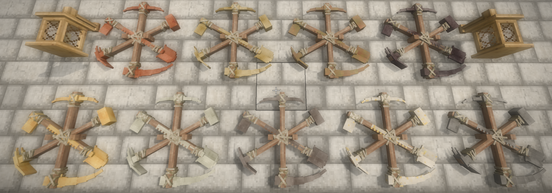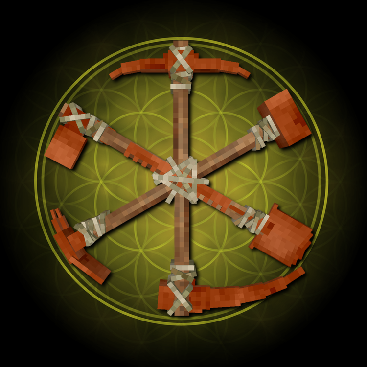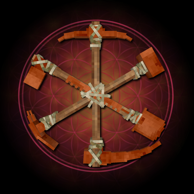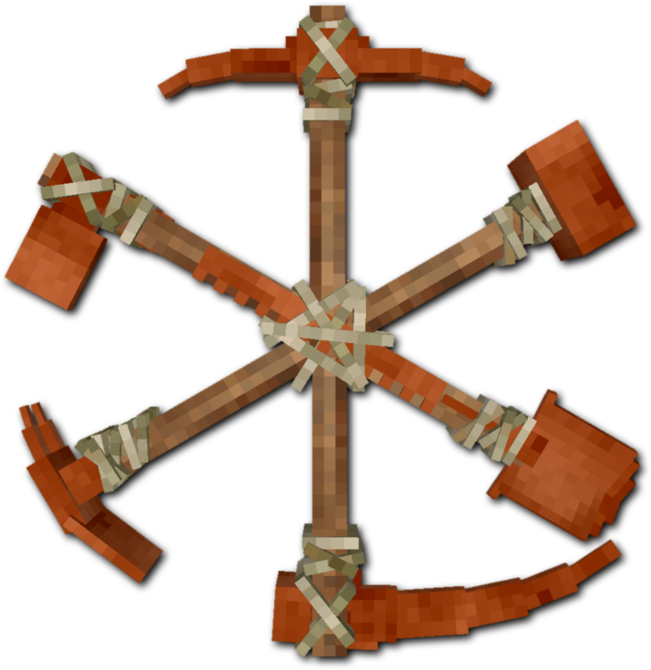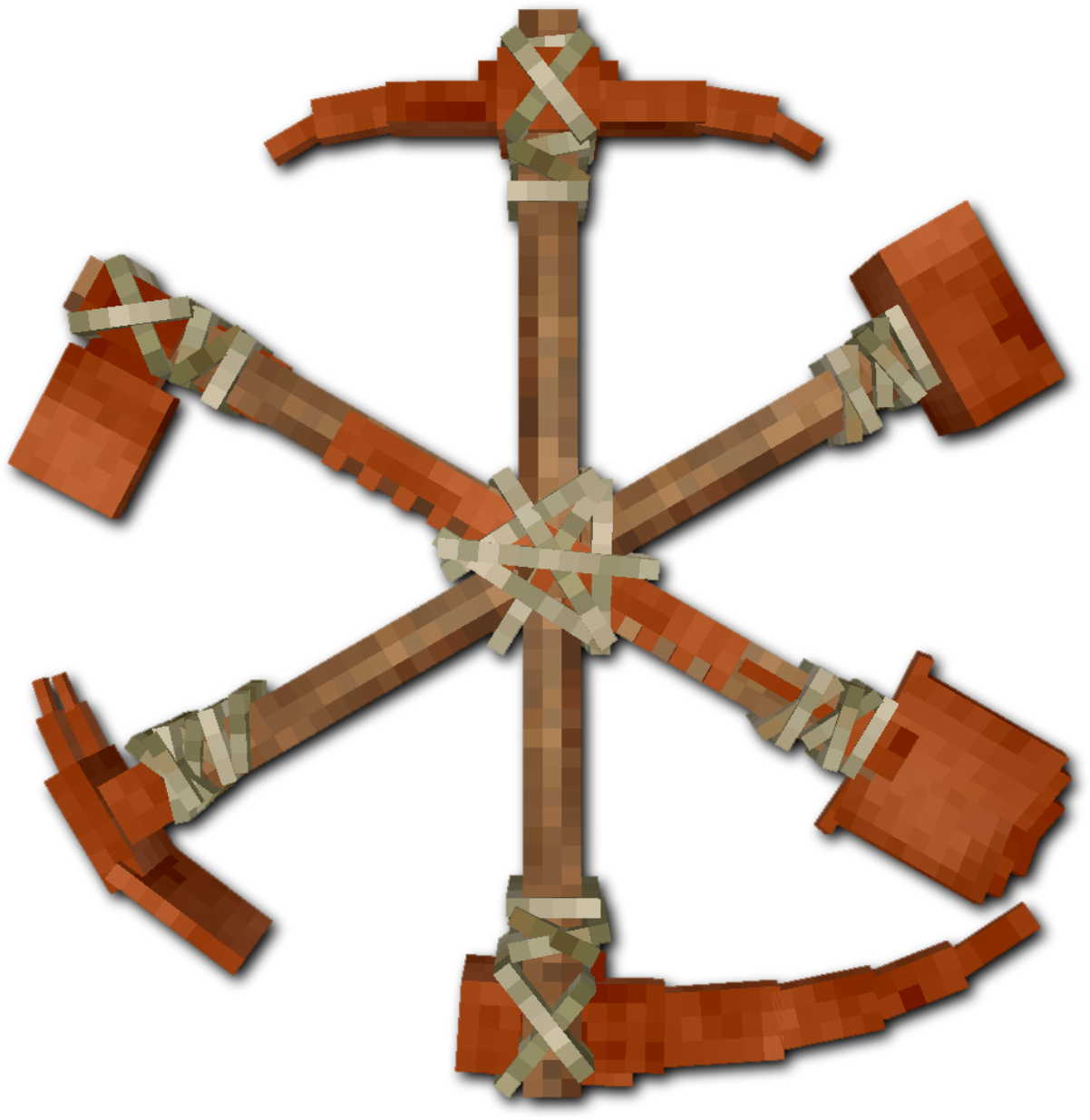 I was very tempted to post a picture of this right away, in my excitement of 'discovering' this artifact. I originally only wanted to make it as a piece of artwork for using online. Anything circular makes a great avatar, after all. But then I realized what I would have been told by probably everyone: that this would make an absolutely fantastic decoration piece within the game. Not to mention a symbol to put on a flag or tapestry as I planned. Then in my excitement I almost posted the beta version of the mod before I even figured out the best way to handle the crafting recipes. Then I decided to take my time and just do it right. Before I begin rambling for far too long, I'll explain the big question. As the title says, I have dubbed this Seraphic symbol the "Haxeus". It is a portmantau of the words "Axis" or "Axes", plus "Hex" meaning "Six", and "Hack" meaning "Whack", or "Chop", or "Dig", etc. Because after all, every one of these tools could be described as "hacking". Especially the hacksaw, which, ironically, I didn't think would fit with this shape until I used only the blade. (At first I tried including the whole saw, and the only place to put it was to make it a mouth, and the axe and shovel become eyes, and it was too freakish and confusing. I'd rather not even mention it, I want this post to be taken seriously.) I can't remember how long ago it was when I first had the faint idea for the basic idea of a symbol involving tools, but I'm realizing now that it might have been quite a while ago. I forgot about it completely, because didn't think I'd be able to pull anything off that would be good enough and unique enough. By that I mean something that's not an obvious ripoff of other logos and symbols. And yet I think this thing somehow turned out perfect. It combines almost all of the construction tools arranged in a circle, and the lines of the handles become a set of 3-Dimensional X-Y-Z axes. And, not only do the tools fit together perfectly like this, the best way to arrange them was at an angle that is appropriate for each tool -- they look like they're in the middle of being used. I didn't even plan on this, and only noticed it afterwards, which another reason for my enthusiasm. To elaborate (as if it's necessary): The Pickaxe needed to be on top anyway, being that it's the key to acquiring resources to craft the rest of the tools, but it's the most appropriate place, as it's the one tool used by swinging it high over your head. The Axe tends to be moving at this downward/horizontal angle when it's about to chop, likewise, the Hammer strikes downward onto an anvil. And of course the Scythe, Shovel, and Hoe face downward, as you're always using them down toward to the soil. The Saw blade I could only include by hiding it in the center, but there's a reason for that, as you can guess. More on the hidden letters later. Anyway, part of what took so long is that I was debating whether to make it work with any combination of metals, but I decided to keep it simple and require all 6 tools to be the same metal. For one thing, I don't know if we want to deal with an item called "haxeus-copper-tinbronze-blackbronze- copper-tinbronze-copper", even if the variant system does handle it properly. It's meant to be a work of art, so maybe consistency is better. Maybe if enough people want it variant versions will be possible, but for now, here are all the available forms of single-metal Haxeus: Copper, Tin Bronze, Bismuth Bronze, Black Bronze, Gold, Silver, Iron, Meteoric Iron, and Steel. I also debated a lot as to what to call it, for a while I wanted to pronouce it like "axes", but "Haxes" looks like "hacksiz" instead of "hacks-ease" like I wanted. But more importantly I wanted to make it sound like a real Latin word. I've also considered other words to add on, like "Locus Haxeus", 'locus' meaning location. Or "Haxeus Cartesia", a reference to the Cartesian coordinates. I'm willing to consider other secondary names too, but I think I've settled on "Haxeus". I don't know why this idea is so exciting to me, but it turned out perfect on so many levels. I know part of the reason is that it's a mod that everyone can install and appreciate because it basically doesn't change the gameplay progression or challenge in any way whatsoever. But on top of that, there's so much meaning behind every aspect of this thing, and that is required for any good symbol. But even better, a lot of it just happened this way through serendipity, much like the things you encounter in Vintage Story once in a while. In other words, I'm not exaggerating, it genuinely feels like I discovered something, as if this was an ancient symbol buried deep in the world of this game. After living in the world of Vintage Story long enough, it was only a matter of time that someone would make it, so it genuinely feels like it arose naturally out of the culture of this world. I also love the idea that in order to make one of these, you have to craft and/or acquire all of these tools, and then use up the tools while remembering not to let them break, and then use up inventory space just to take them home, just to build this symbolic trinket of achievement. It's a satisfying accomplishment as well as an attractive centerpiece for your coffee table. Of course, it's designed for more than a table centerpiece, and can be mounted on any wall or ceiling. It will be up to you not to let it clip into nearby walls or ceilings, as it takes up approximately 140% of a single block. You can still fit a Torch or Lantern right next to them, which will probably be something you end up doing to draw attention to your new wall ornament(s). Speaking of ornaments, which are usually hung down from something, I'm not sure if it should hang downward if placed on a ceiling, nor do I know how to make that possible in regards to rotation. For now it just mounts flat against the ceiling. If you have played a long time already, and you've thrown away a lot of brok