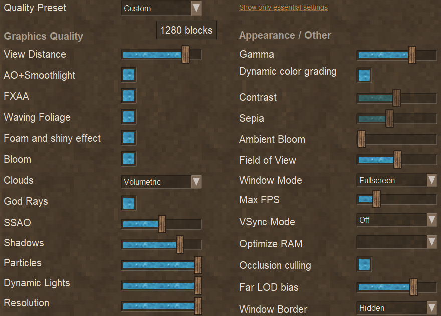 Regarding the in-game VSync... I used to experience very mild, but frequent stuttering with in-game VSync - it was barely noticeable, but still felt weird. It stopped after i set the in-game VSync to OFF and only use the Max FPS of 63 (using a 60Hz display). (also not using frame rate limit or VSync in Nvidia control panel - i did not test how that feels) I have Nvidia 4070S, and i play in 1080p, but with high-ish graphics settings (in spoiler). Here is an in-game FPS graph. As you can see, both VSync options come with a subtle frame rate jitter that goes under 60 FPS. With VSync OFF, that downward jitter is gone, the lows are nicely flat, never going under 60 (well, 61 to be exact).