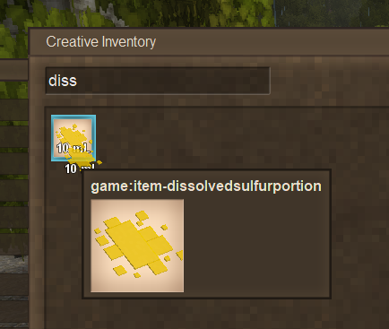 1. Hey all, I'm having trouble getting liquids to work in the mod I'm working on with a friend and it seems no matter what i do they just wont register as blocks. At best, the liquid WILL show up as a item, but it wont appear in a bucket in the creative inventory and if I try and use the existing base game code for liquids with the added "[ { type: "block", code: "game:woodbucket", attributes: { ucontents: [ { type:"item", code: "gggenchem:dissolvedsulfur", makefull: true } ] } } ]" section formatted correctly, it just crashes the same as This existing thread. I'd appreciate any and all helpw ith this because the wiki doesnt have much in the way of guides for custom liquids, and even attempts at reverse engineering the code for other mods liquids hasnt gone very far . dissolvedsulfur.json dissolvedsulfurportion.json