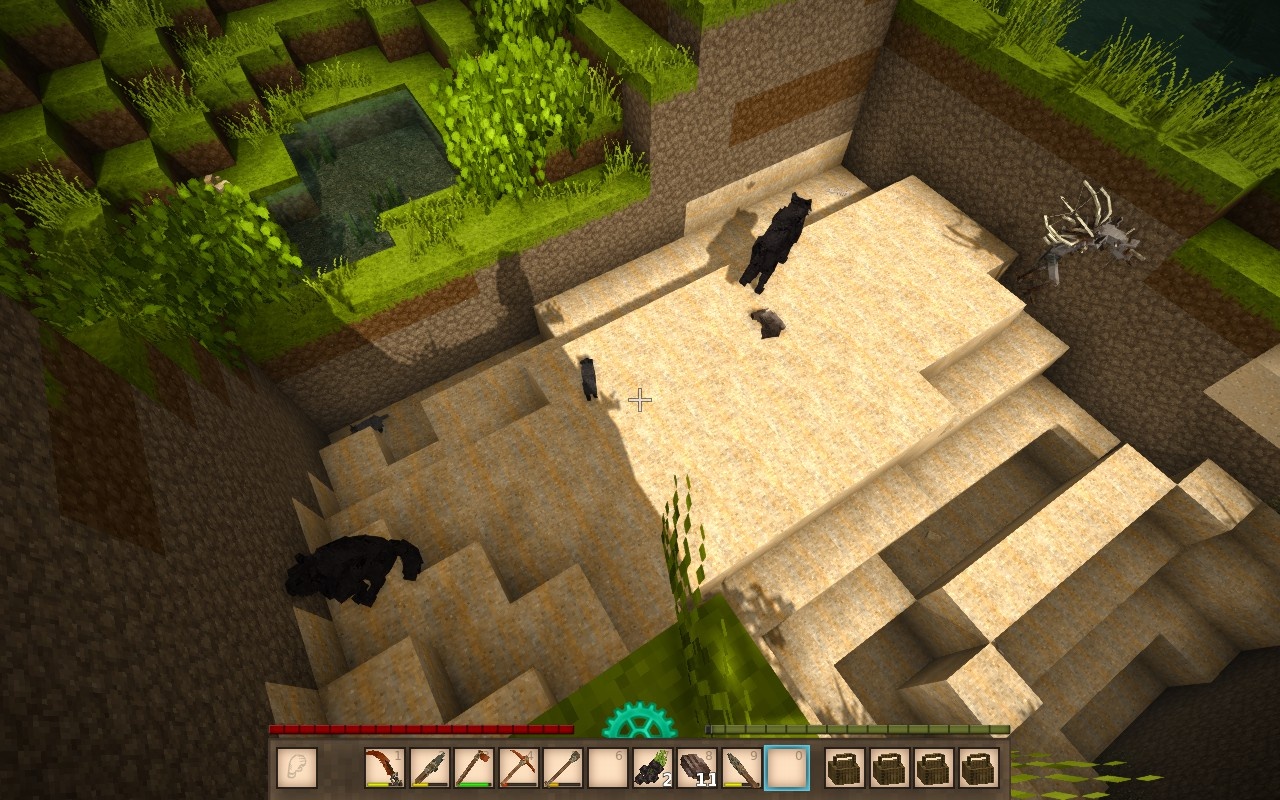 i have a lot of wolfs and a monster that look strong in the hole i dug in the front of my base. if i go near the wolfs to attack them the monster shot me and if i fall i will be eaten alive. any safe way to kill them ? do they starve to death ? do they continue reproduce ? can i make a wolfs farm ?