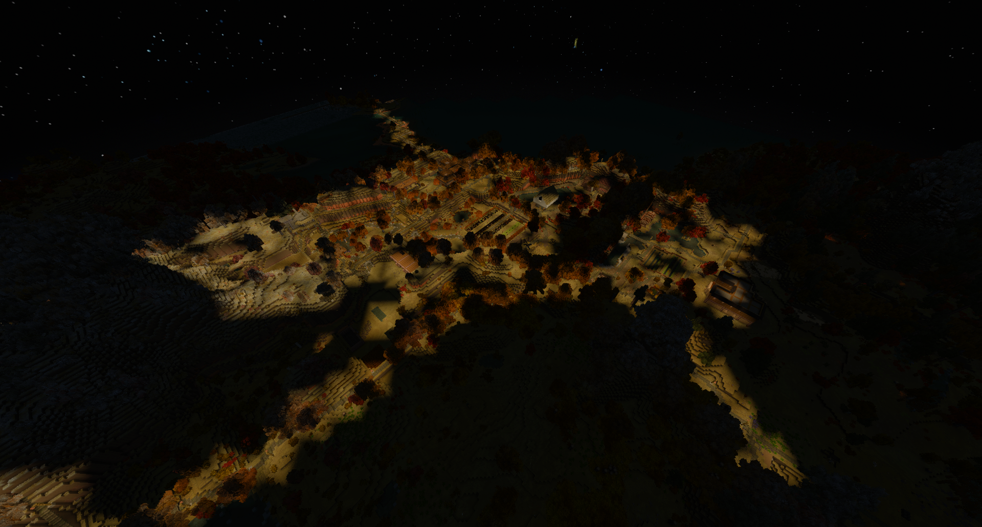 Like the title says this is what my village looks like on I've painstakingly make thousands of paths, around 150 or so chiseled light posts and hundreds of copper lanterns and placed them around all of my villagers (4 Players) (looking for 9-10 players still ) Day light Night time Trying to use map for scale
