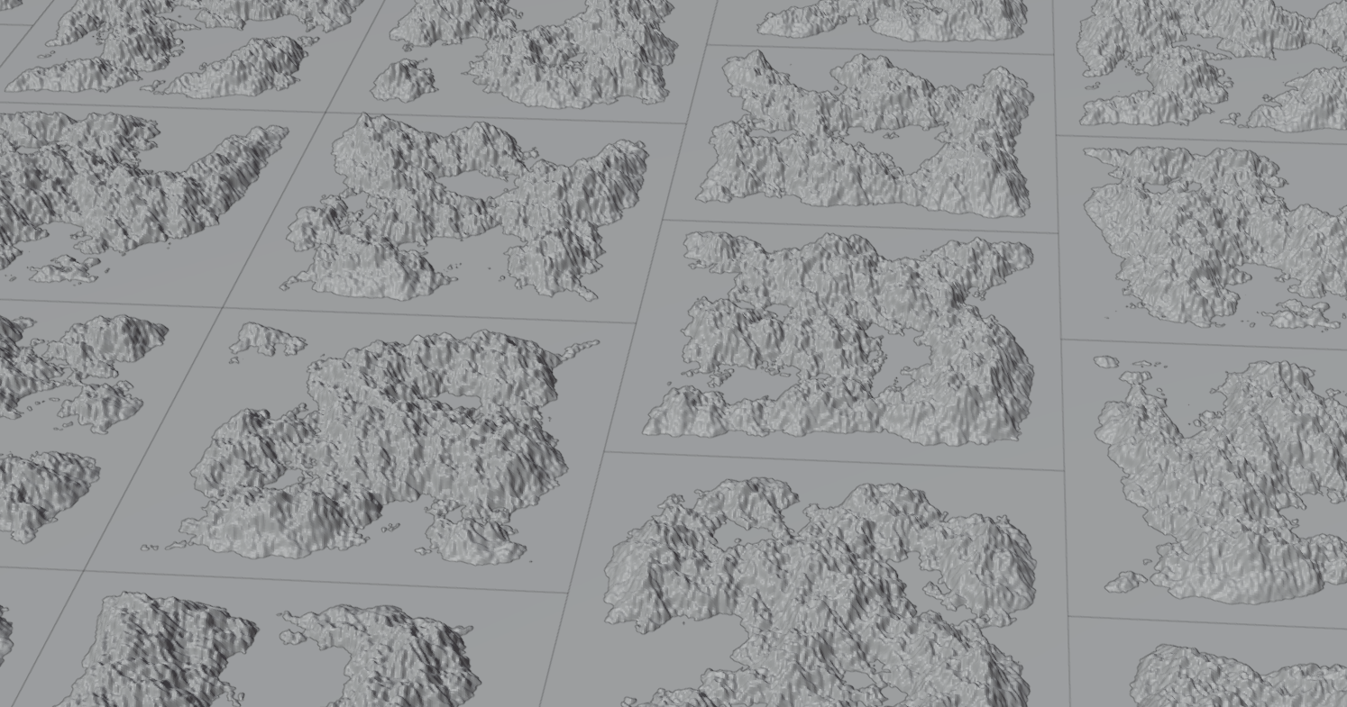 I think rivers and oceans could add huge gameplay as well as aesthetic benefits to the game, when combined with reworked world gen and water mechanics. Rivers are imo the best examples of this, since they could offer the most in terms of gameplay: Generally better soil quality and more frequent clay near rivers Farmland near rivers will be moisturized, only river water should moisturize farmland Waterwheels powered by rivers enable more constant mechanical energy Small canals (8 blocks max length) build from rivers enable watering even bigger areas Canals or aqueducts powered using mechanical energy enabling even better farming or even transport of floating items Rivers could work without oceans, but then they would be limited to being flat like in Minecraft. Realistic rivers flowing downhill require terrain generation on a larger scale to be able to be implemented. River generation needs to be done in separate larger areas, where a river from one area can never interact with one from another area. The best way to do this would be by dividing the world into continents. Each continent would be surrounded by water, the ocean, seamlessly dividing the continents from one another. The ocean wouldn't be very wide, as the continents form a grid, so traveling from one continent to another shouldn't take very long, I think something like one to two kilometers of oceans between continents would fit the best. Here is a quick blender visualization of a few heightmaps I generated that demonstrates the general layout of continents (imagine the most left column was also offset): A benefit with this layout is that on each continent only has six neighbors instead of eight, meaning that when creating a new world, only seven instead of nine continent maps need to be generated and only three instead of five when entering a new continent. The continents are basically just heightmaps, where each pixel represents a chunk column. These values would not just have an effect on the generated terrain, they would offset the whole chunk column vertically. This allows far greater scale, greater heights and deeper depths, while not having to raise the world height or change the chunk or world generation system entirely. The ocean level would stay static and not be offset with the chunk columns, meaning that this system automatically creates oceans, when the heightmap is low enough to submerge the terrain. Rivers will be generated with the continent, meaning they will realistically flow downwards, towards the edge of the continent and therefore into the ocean. I'm currently experimenting a bit on implementing river based terrain generation to work for generating such heightmaps. Generating those continents with rivers doesn't need to be done often, but will probably take a few seconds, so there needs to be a bit of a compromise when it comes to their size. I think 512 by 512 pixel representing 512 by 512 chunks would be a good size, meaning the continents are a bit bigger than 16 times 16 kilometers. This means, traveling south the player needs to cross an ocean to get to the tropics, but as oceans between continents shouldn't be wider than two kilometers, it wouldn't take long with a boat, maybe 10 minutes. 1024 by 1024 chunks would also be an option, offering roughly 32 by 32 kilometer continents, making crossing the ocean almost match crossing the equator, but coming at the cost of requiring at least four times as much computation and therefore time. Other than continents using vertical chunk column offset giving more scale to the terrain and creating oceans, there are also several benefits to them: Oceans allowing for saltwater, salt harvesting, islands, beaches, marine life Continents having distinct flora and fauna (maybe even people/cultures) mimicking real life Temperature and rainfall changes taking advantage of the bigger scale, no more sudden shifts by a few blocks high hills More realistic rainfall and temperature distribution, depending on the heightmap Landform appearance dependent on chunk column offset, allowing for highlands landforms, ocean landforms, etc. Every continent connected by the same ocean, making travel by ship really useful Small inland oceans dynamically appearing, being natural barriers for traveling Enabling realistic rivers, always flowing downhill into an ocean and complex features of them, like river deltas