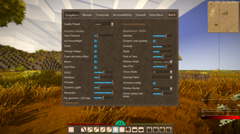 I have been playing Vintage Story v1.20.0-rc3 and I have been getting some very weird "micro-stutters" or "hitching". I have completely stable fps (400+ if I don't limit them) but I keep getting these weird stutters where the fps is basically 0 (so frozen) for about half a second or a second.
