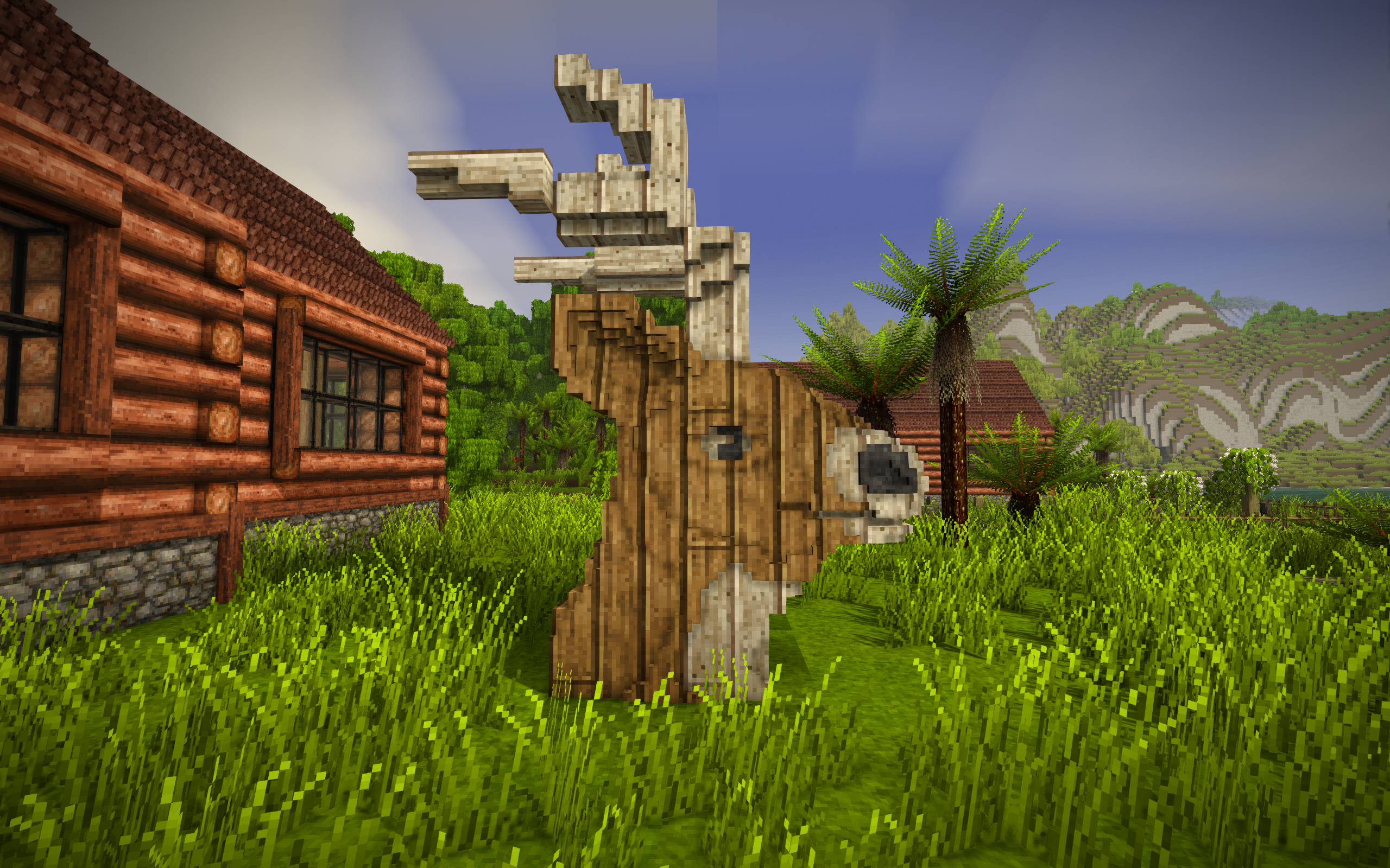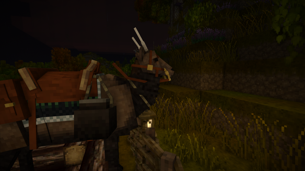 With the addiction of the Elk, I thought it would be really interesting to add some kind of beast-of-burden to the game. You could put more storage on these animals than you could elk, but they would be unrideable. You would have to 'drive' your herd in order to move the resources along. This could add really unique interactions with predator animals, as well- you could have to defend your herd from wolves or bears as you move them to a build site- or have to move the herd often in order to find fresh grazing.