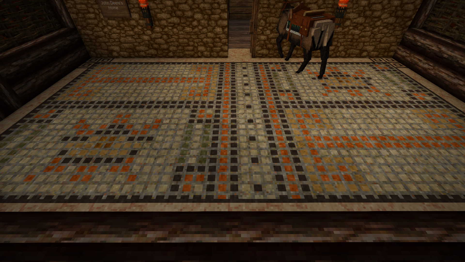 image.png John Deere was my Elk in my first Vintage Story World (I literally got the game because I saw that you could ride elk), and I absolutely cherished him. Unfortunately, I had left a pit unfilled and a bear had wandered into it, and John Deere came loose and ran into the pit. He unfortunately passed away- ever since, I've wanted to do some kind of monument for him, so I decided to make a statue of him! I have yet to actually create a place for the statue to go, so any ideas would be amazing! (The last photo I took of John Deere.) (The tile floor ((Inspired by an image in one of the Dev Logs on this forum)) I spent forever on in John Deere's stable.)