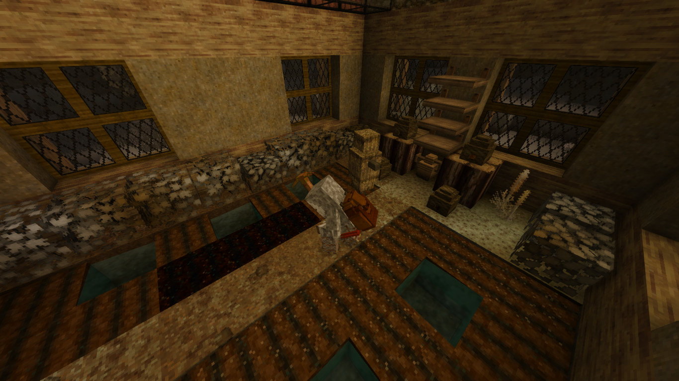 As year 2 comes to a close and the cold winter air keeps me in. I've reflected on my trails, tribulations, and builds throughout the year. In my last post I had outlined some basic goals to reach. Goals like mechanized power, alcohol production, and a greater yielding farm. To say that I've smashed the goals through the ceiling is an understatement. The farm is divided into 6 sections. with the main central plot being utilized for fruit trees and most of the main crops. With the outer sections only containing berry bushes. So far, my flax field gains are more than I'll ever see at the gym. Now that the farms been taken care of next is... Well of course my inner brewmaster is what is next! after hastily constructing a distillery, I began experimenting with all sorts of fruits. From ciders to brandy's, I tried them all. However as pictured above. I think the mead is the best by far. One drink had this Drifter slumped at the table. Then once my lust to be an in-game alcoholic faded. I moved to the biggest project of all. Mechanized power. And just as winter began to blanket the land, The hammers of my forge could be heard all around. Dual helve hammers baby. And just before I begin the next chapter of my adventure, I'd like to share some final images I thought were neat or cool. Welp that's about it for now! Until my next post, don't become wolf bait and Merry Christmas!