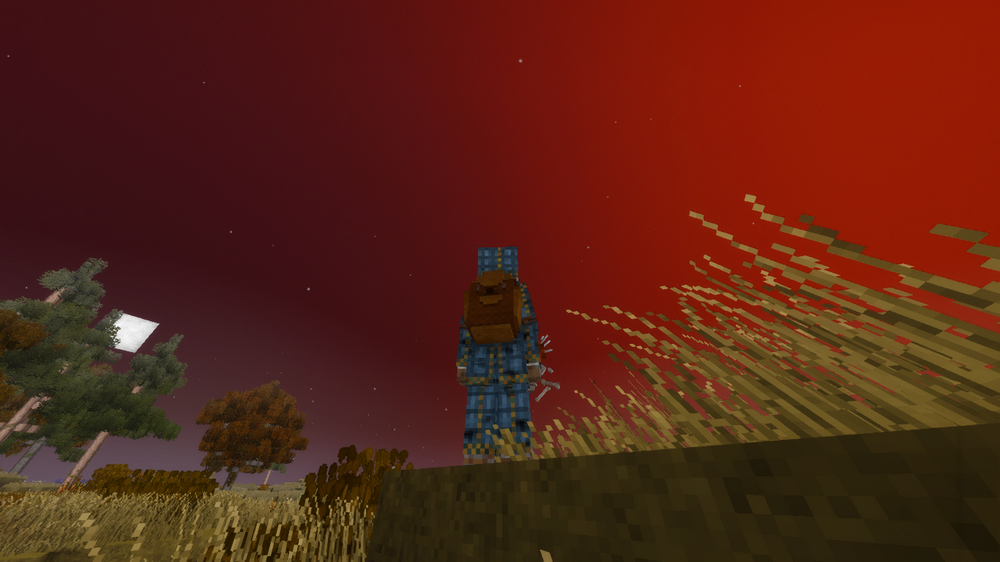 Since my last post, the howling winter has concluded, and now Spring flowers blossom and that beautiful sun shines on. During my "hibernation" I made multiple strides. From gently expanding my farm, to establishing myself firmly in the Bronze Age! I've made improvements to the main cabin and have changed the old shelter to a storage room. My pit kiln and forge have seen minor to little improvements, along with the "Char Pit". My goal this year is to advance to the Iron Age, get bees, and get drunk on berry mead. Oh, and windmill will be cool too! (Those two-tone skies are just something else ) Until my next update, stay safe from the wolves!