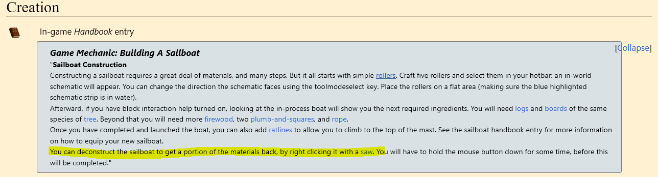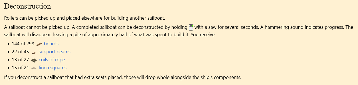Here you go... according to the Wiki it looks like you will have to complete the boat construction before you can deconstruct it. Wiki Link