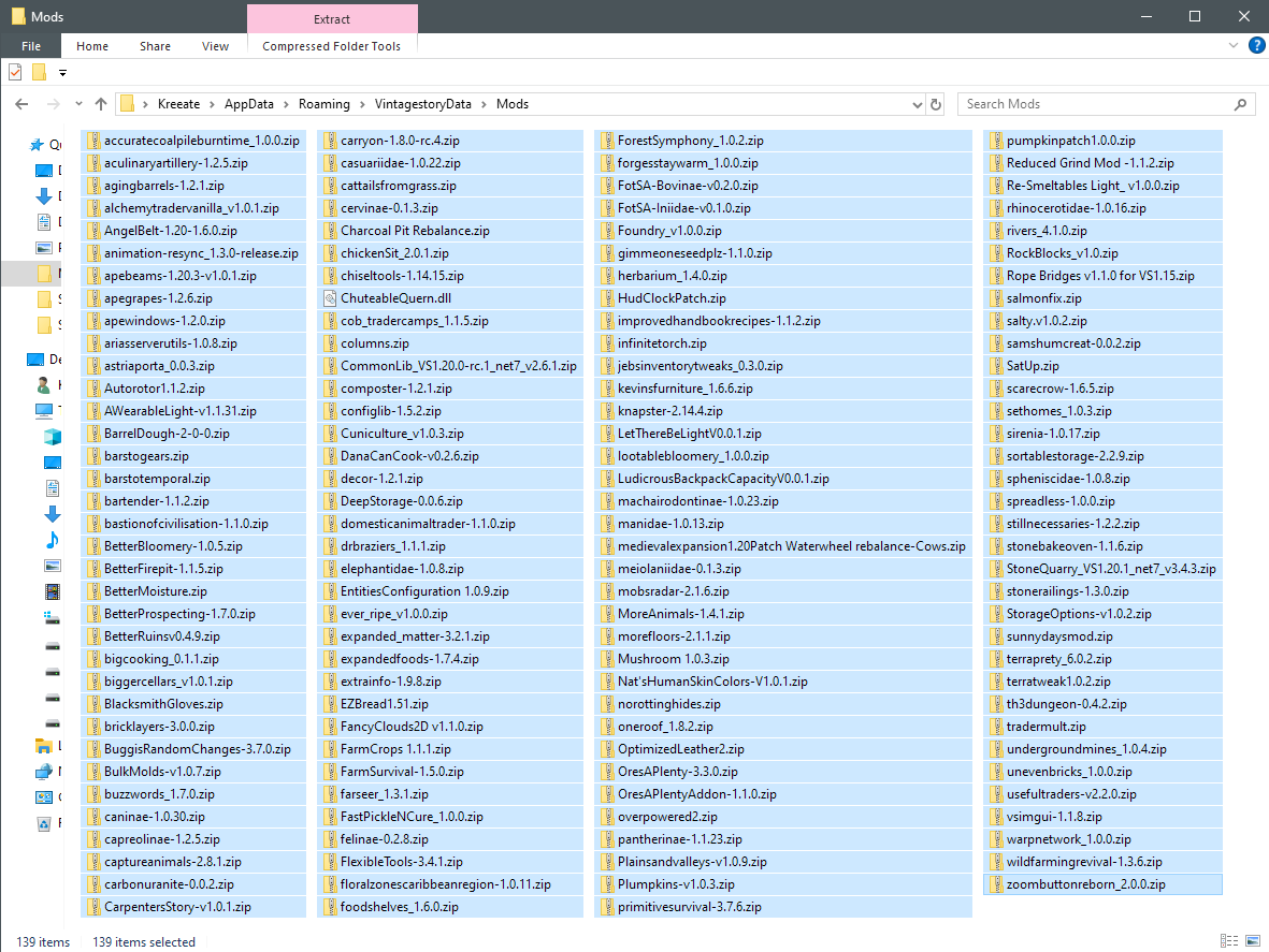 Currently at 139 mods. The one named "overpowered2.zip" is my own unpublished mod, messing with inventory and storage sizes as well as stack sizes. All other mods are from ModDB.- 33 replies