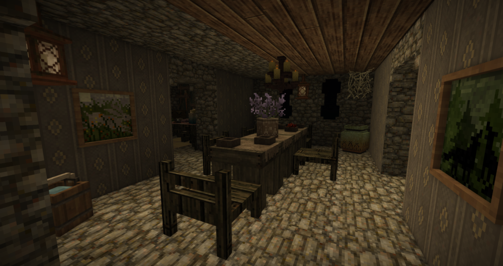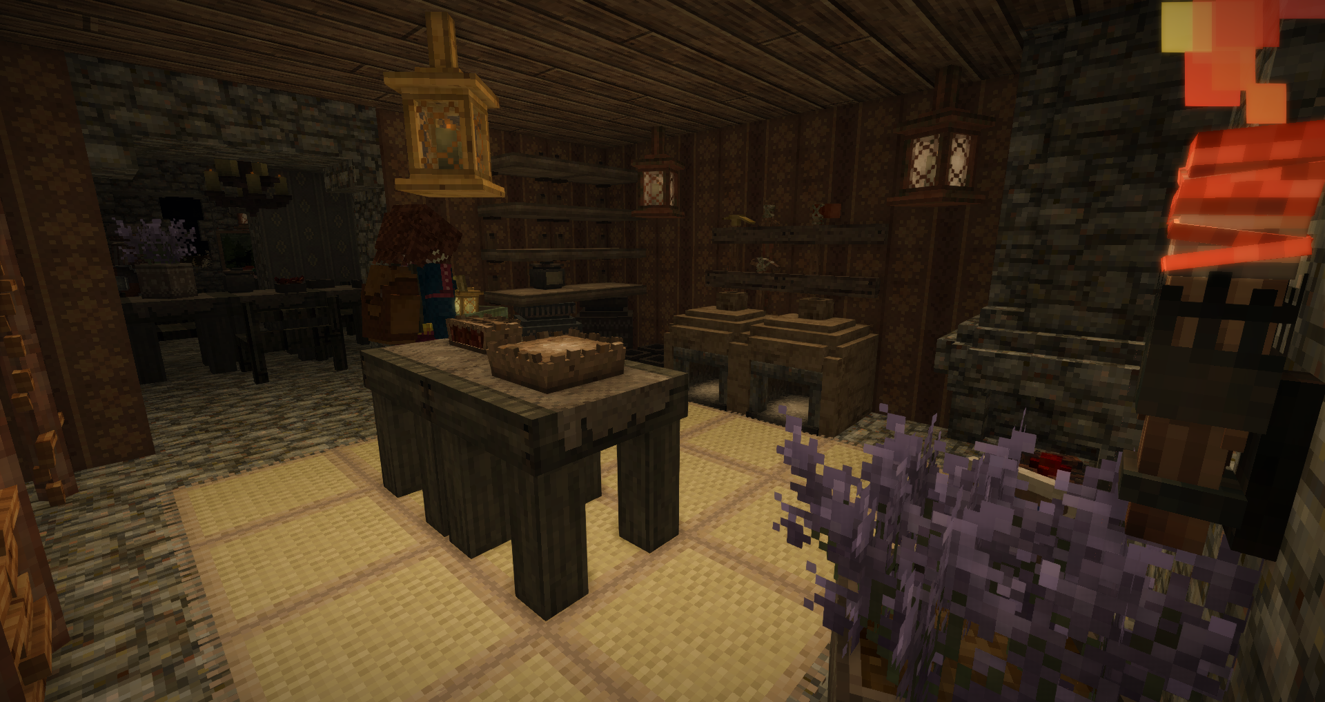 1. Here's our little castle that we've been building on our server over the past week. It's not finished yet and we're still missing a few things, but it's a beautiful home. I thought I'd share it with you guys! Blacksmith Shop Dining Room Kitchen Auerochs Farm Main Hall Cellar Forge Castle itself