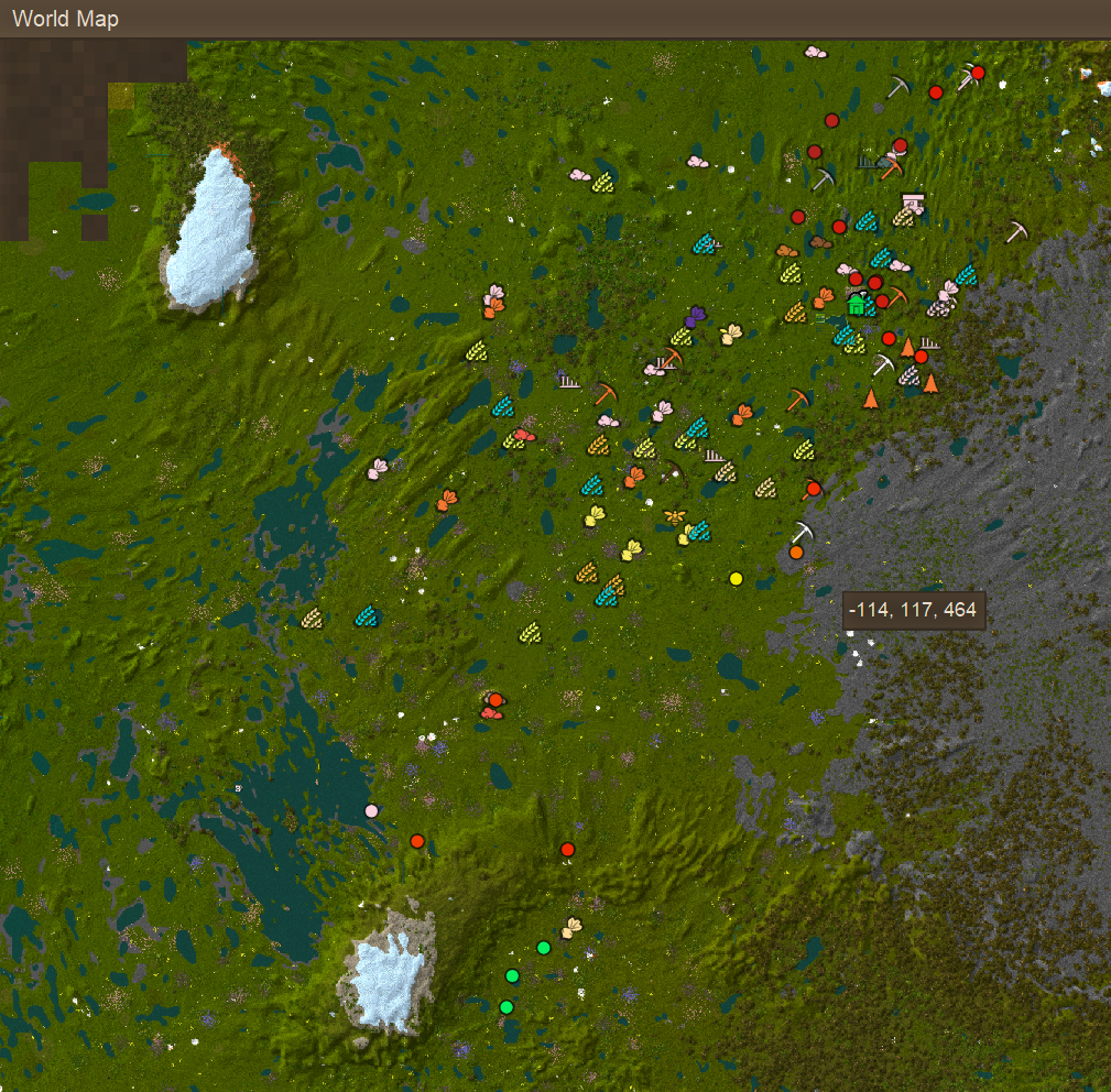 I've been digging around towards the east from my home, my best lead so far for cassiterite is 0.1‰. Fortunately enough, there's a massive vein of copper and limonite there! I've been finding what seems like ruined trading posts. I can't modify any blocks there as they are claimed by traders, but weirdly enough there weren't anyone around the structure. My area is strangely barren besides one tree house containing a building materials trader. Update: I found the cassiterite vein at that 0.1‰ prospecting point. Thankfully this will make for a good amount of bronze for me in the near future, especially with the massive copper veins around me and the couple of iron veins around.