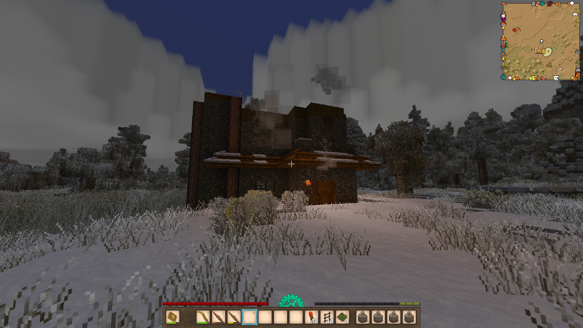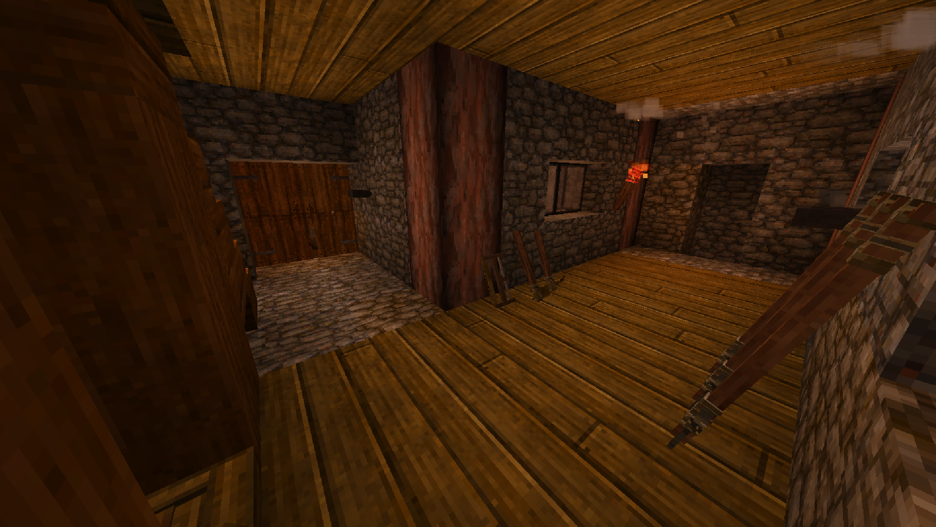 I have since added on to the ruins. I have fully restored and renovated the basement. The first floor is mostly complete and the roof trim around the bottom of what will be the second floor ties it together well. I am having second thoughts regarding both the second floor and my tower design which has brought me to a temporary standstill. I'll mine some quartz for glass while I think on it. I may change the tower back into a chimney and turn the section above the front door of the second floor into a balcony since I do plan on fully walling in the ruins and pond it is located next to. Also, just in case anyone is curious this is modded but in a very vanilla plus way. I have walking sticks, backracks, better trees and better sticks, primitive survival and some of the Fauna of the Stone Age and Flora mods. Also Equus cuz honses. I have a good deal more but it's all in that vein of enhanced mechanics mods. Also the world gen settings are slightly altered, I made the world bigger and 70% landcover and tin/copper surface deposits boosted to rare and uncommon respectively. Oh and if anyone has any ideas on what I could do with the tower/chimney and second floor feel free to send some ideas this way! I tend to struggle around this point when it comes to base building. I plan to have the first floor be a common area/kitchen/dining space with the second being dedicated to living space for myself. I still want to retain as much of the shape the ruins left me so I'm fine with cramped = cozy.
