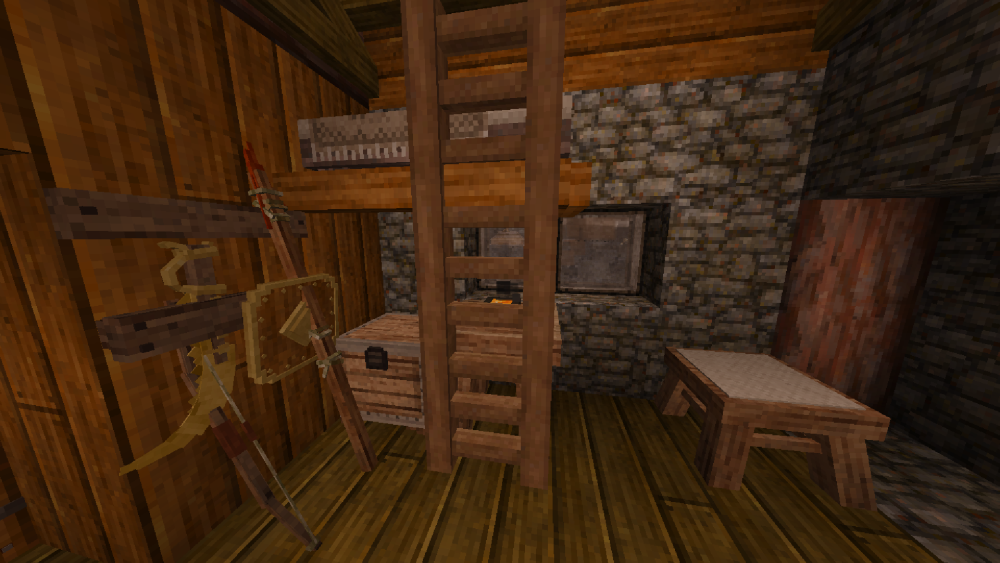 I've completed the restoration of the structure itself. Only things needing completion is the chimney (because I need to figure out how to make 3 separate fireplaces on each level filter out of the same stack since I'm using realistic smoke mod) furnishings of the first floor and the kitchen in the basement. Once I've done some proper caving I should hopefully have enough decor to fill the empty spaces. So for now I have a functional yet blank dwelling, truly a bachelor pad. Front exterior. I went with the chimney and adding a little balcony. I believe I could improve the balcony but I'm going to save that for when I put time aside for chiseling. First floor. Going to make it guest friendly, though this is designed for one person really. This is what I did for a bedroom (bunk bed supremacy O7 ) I wish it did it justice but believe me the seat is placed for a perfect view of a lovely mountain. This is a night sky view from the balcony. I have a cellar and kitchen but those are not interesting enough to showcase I believe. Maybe once I've furnished them I'll showcase them here or in the builds forum.