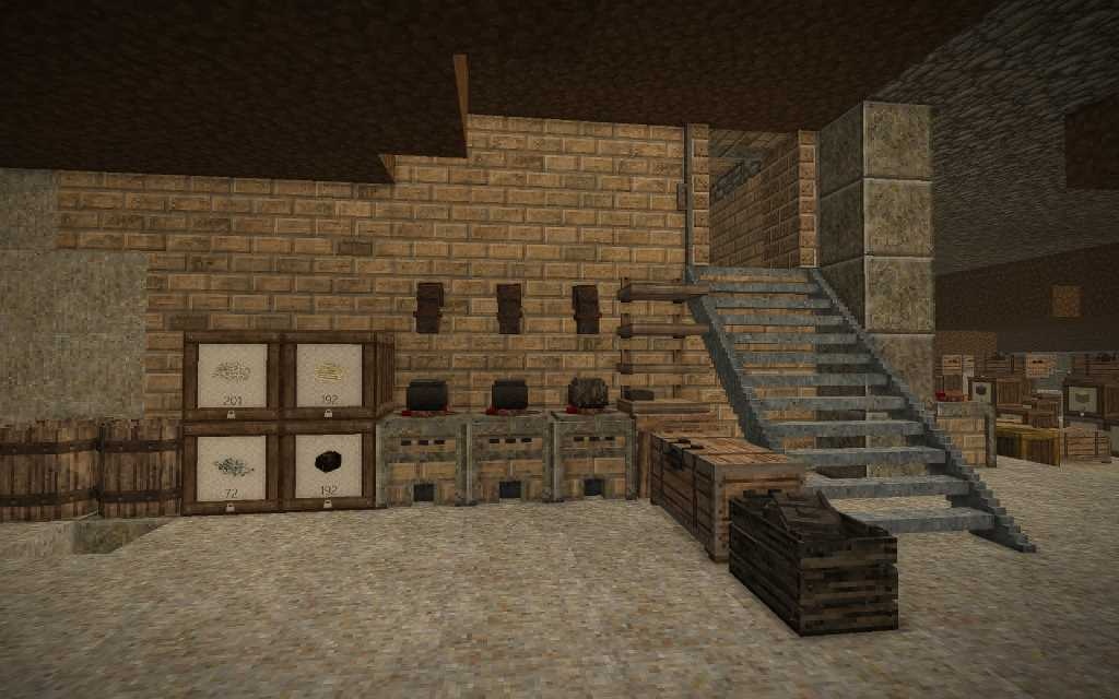 After finishing the ground part and finally finished the roof, it could been called as a true factory. It benifits me a lot. I can work with and take any mineral things in it. But it's not enough. Have you experienced it? After coming home, there are many kinds of items - especially mines and rocks. Running here and there to classify them is so boring. So I started Phase 2 project, the underground floor. On the left of stairs, it's a beehive. We will come back to here. Walking down the stairs, turn left, here is for ceramics. There's an another stair to the burning room of beehive. The pottery can be sent there very fast. Turning right. It's a large space for rocks. Every kinds of rocks are classified here. I can finally empty my backpack conveniently. This part was tranformed from a natural cave. The decoration haven't been finished, because I pay most attention to the museum. Lime furnacing. You know, I dug tons of chalks. Most of rocks are consumed here. Both the pillar of extorior wall and window frame need it. I'm certain that it will cost many crates to contain chalks without this area. Dyeing and Sulfer processing. It doesn't really important, because I already have top-tier backpack and warm clothes. But I trust it will be useful. We have more and more powders during updates - sylvite, sulfer, charcoal etc. Chemical may be the future, but who knows? At last, we come to beehive again. It's the underground part of beehive, which burn fuels. It connects the ground - iron furnace part and underground - sulfer processing part & ceramic part. With the connect, moving between these room becomes faster. At last, you may understand why I call this factory a Core Factory. It processes almost everything in this game about mining. Maybe you have noticed my habits: If a building is built for supporting surviving, it should be effective and conveniet. If possbile, I will make it a bit bigger. Our game is still updating, I want provide enough space to item in the future. I hope this experience could help anyone who wants to integrate functions into 1 building. And, wish you can like it. I'm not very good at English. I apologize if you feel a little curt in my words. Thanks for watching this long note about the supporting buildings! Next I will continue updating the museum!