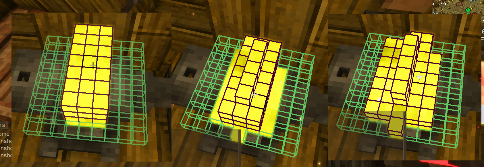 15. ...and this is why I attach the helve directly to the windmill rotor. Y'all are willing to expend genuinely incredible amounts of stuff to save yourselves ten in-game minutes of climbing up and down a ladder. To make the helve go fast, let it do the part of the job it's good at! It is BETTER than you at that "move a voxel from here to way over there" thing; does it in one whack, where you have to go.. one.. space.. at.. a.. time. So let it do that part. But YOU are better at clearing big chunks of slag off a bloom or blister. Here, look at this bloom: You can see I did NOT clear every bit of slag off, nor did I do the tedious work of moving voxels over. All I did was whack off those chunks of slag where I could get more than one with a single click. In the left picture, you can see the mouse pointer resting on a voxel where a click took off FIVE voxels. If I were processing this bloom by hand, it would be about a quarter done, but FOR THE HELVE it is much closer to finished. I will barely have time to do this to the next bloom before this one is finished. It's about three times as fast as just setting untouched blooms on the helve hammer; it's practical to run three forges while doing this. Here, observe this plate: What I've done here is pile up two ingots, then used "Heavy Hit" to to punch five voxels right down the centerline of the ingot to place *fourteen* voxels where they need to go, then more heavy hits twice each in three spots on the left (center, two UP from center, two DOWN from center) to place another nine voxels, and then twice each in three spots on the left to place nine more. Seventeen clicks, thirty-some voxels. I never quite get it right because I'm old and tremula is a whole thing, but it's still about two voxels per hammer hit. Then, because every one of the remaining voxels would take between two and seven(!) hits to move into place by hand, I give it to the machine. If I grab the previous plate off the floor where the helve dropped it, I have just about time to make a chain section or an 8x of nails and set up the NEXT plate before the helve finishes with this one. Again, about three times as fast as handing it the whole job.