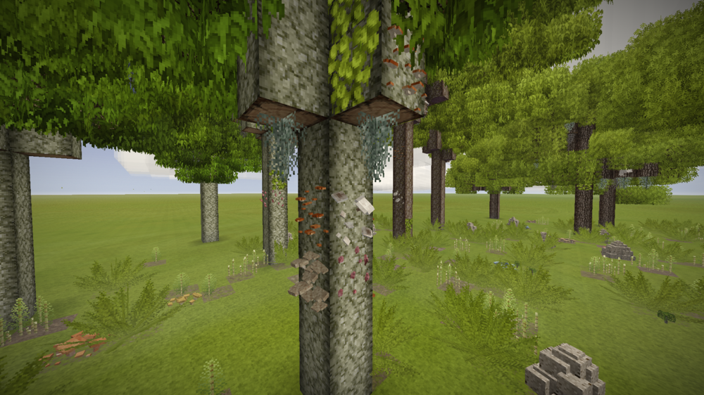 Great update for the mod! Self propagating trees are awesome I have done some testing and want to give a little feedback. After a while (like several years) forests get extremly overgrown (Like in the picture of this redwood forest). I'd suggest to make it so that even after some time there are empty spaces left. not sure if thats possible though. Maybe add some grass to the things spawning so it does not get crammed with ferns that much. Also it seems the type of ferns and mushrooms spawned depend on the tree planted, which is perfect. Atm trees like Kapok, Acacia, and other southern types would spawn things that should not grow naturally in the jungle though. I'd remove the horsetail and eagle ferns there and add crotons, tall ferns and other jungle plants. maybe even some bamboo and fern trees if possible. Edit: after having a look at the mod json it seems for now the plants spawning are the same for all types of trees? Planned to change in the future? Also i observed several trees that after some time had 3-5 different types of mushrooms on them. That seems to much to me. Maybe you can adjust it so that one tree can only have 1-2 different types and they dont spawn that often. The amount of termite mounds spawing also seems a little to high. I added some pictures to this post for reference. Thanks for that awesome mod Jake! I am looking forward to more content and adjustments.