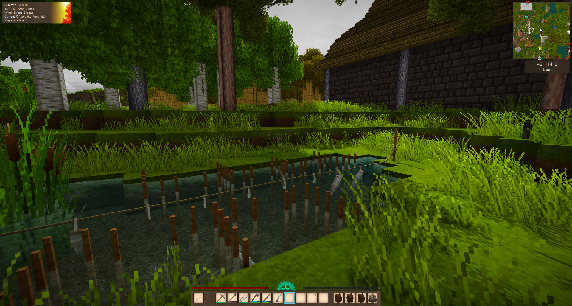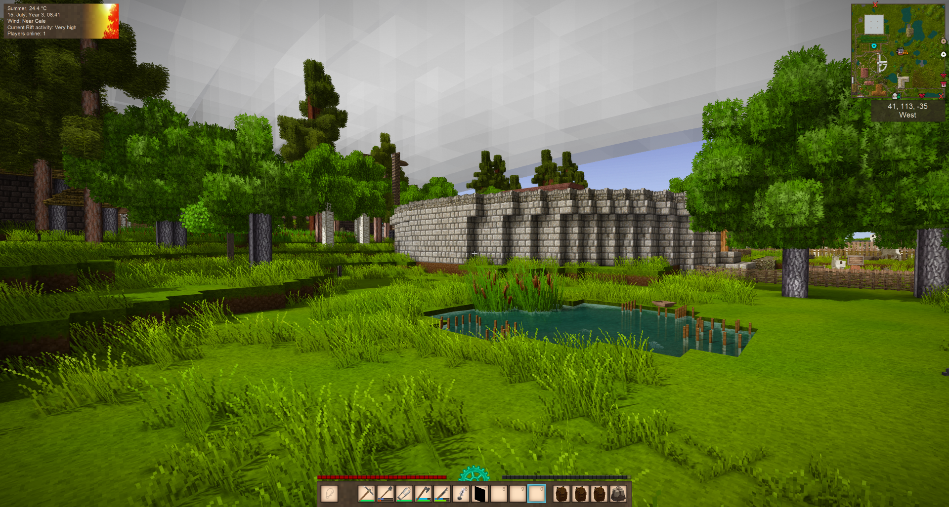 Edit: I laughed rather hard noticing my health bars. dudes i played with in this world would always ask why i don't just eat more. i ignore my poor guy when it's crying about starving hahahaha until i notice health bar going down. i blame playing decades as a warlock always inching towards perpetual death in WoW.