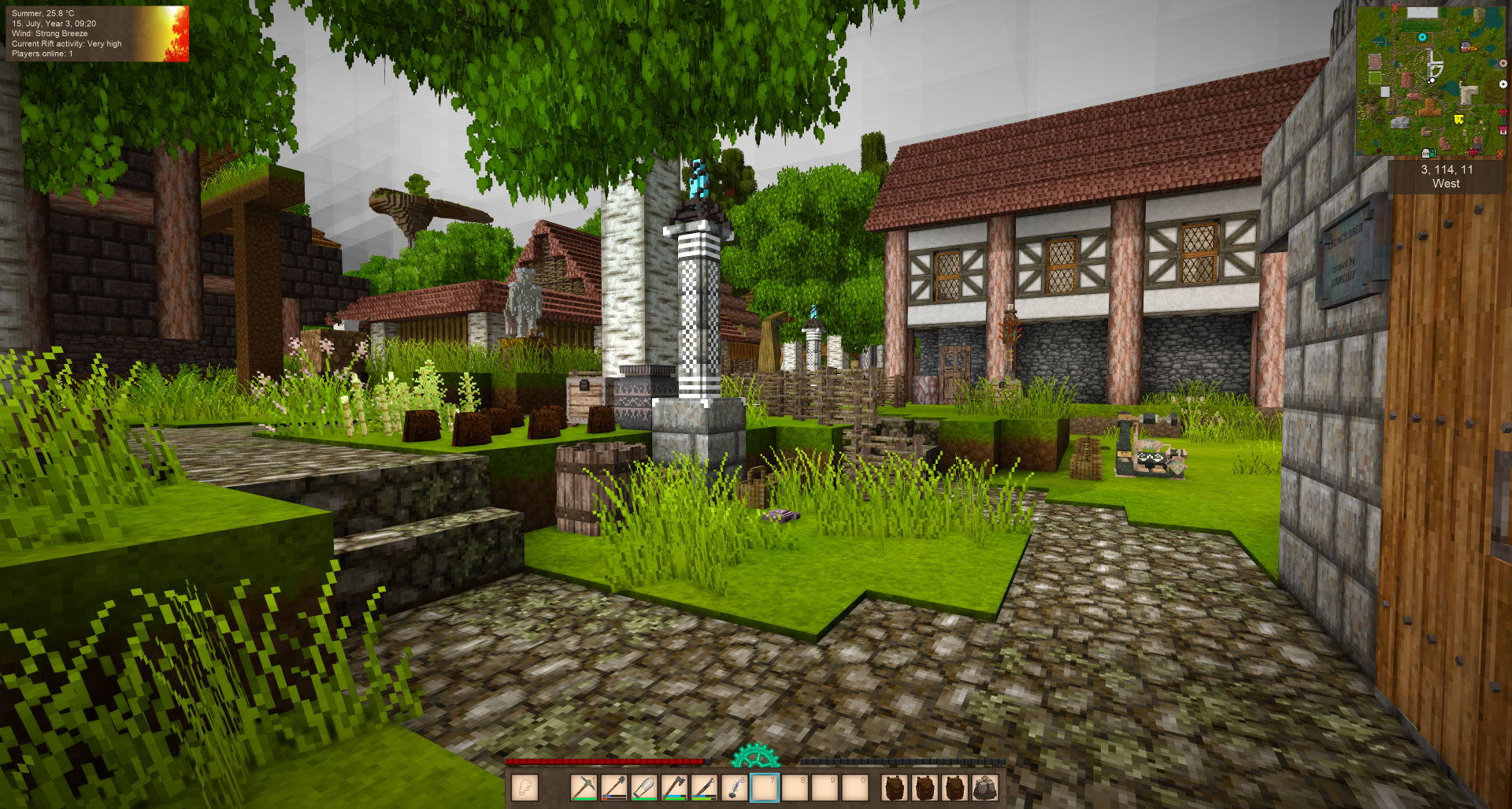 There's the start of a village that the initial group created, with an amount of stuff in it already. The guy rebuilding the new player starting area, I believe, is going to continue building it. I think everybody else quit. At least, they quit this world for sure.