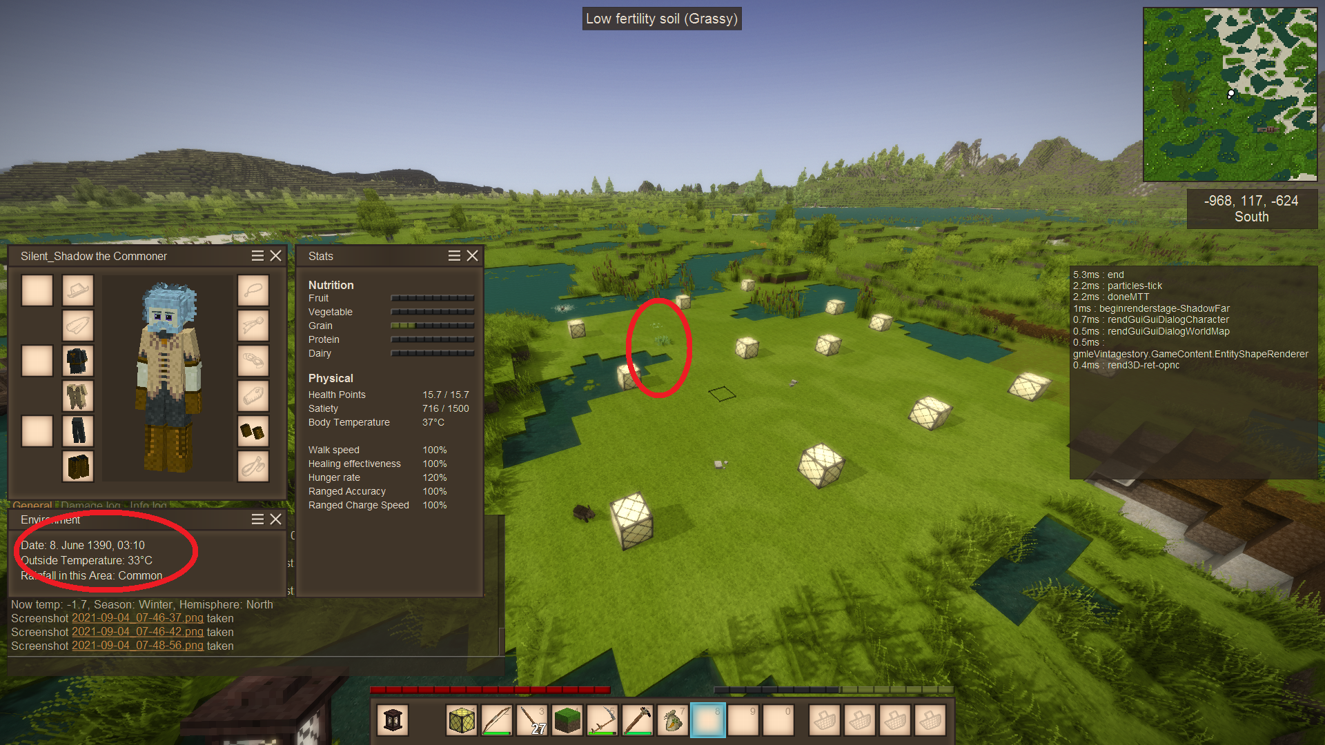 And now I present proof that wild crops do spawn after world gen. If you want to replicate this, I highly recommend using /wgen pos climate to find a spot with high shrub and rainfall. Some barren, almost desert places do not even regrow grass after several in game years. All hail the magic conch wiki!