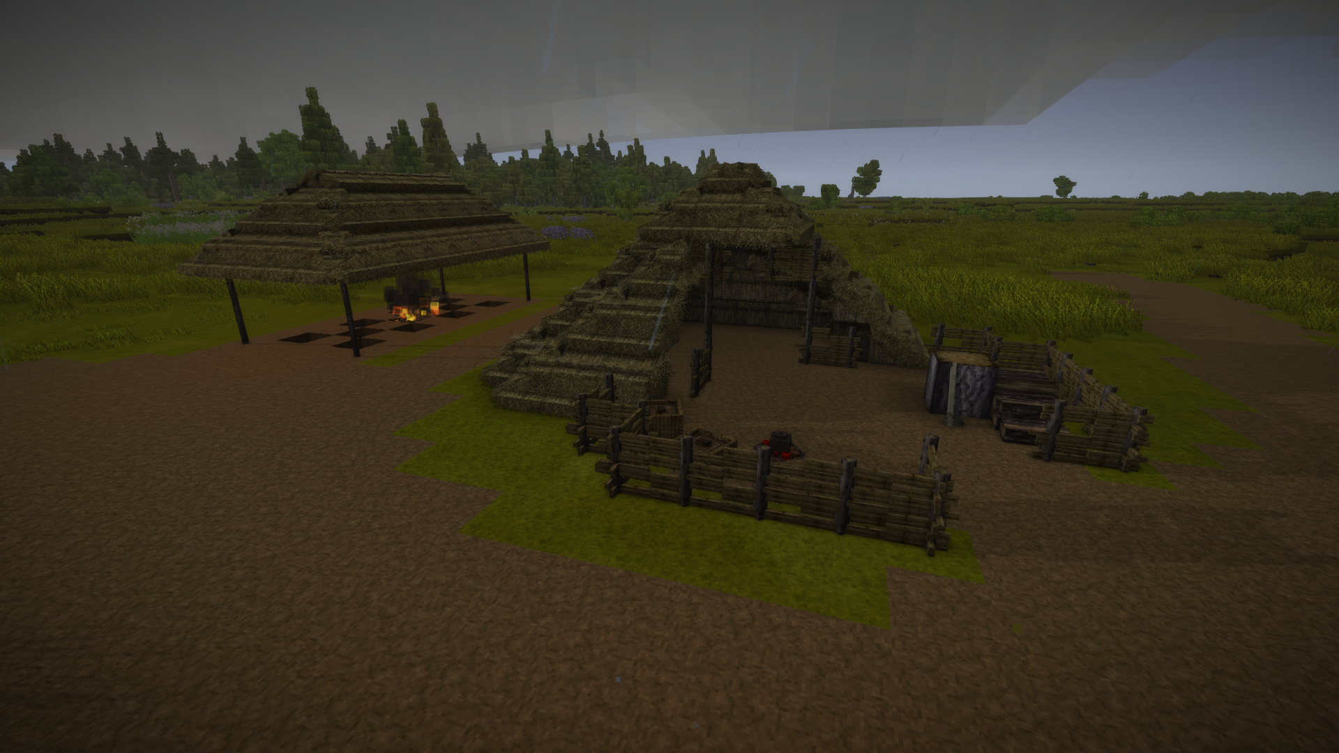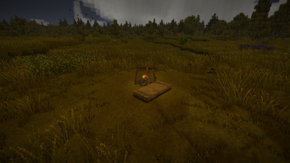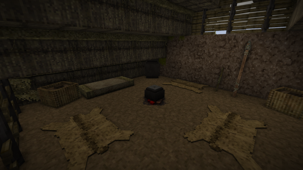 It is just temporary build but it works, and feels much better than just a hole in a ground. Now I just need to find a good amount of copper and create more advanced tools. After that I can build a proper buildings and get rid of these ones
