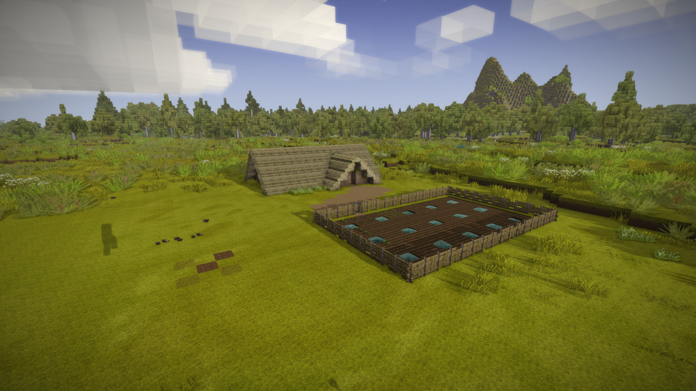 After a few days I build some starter A-framed house and a basic farm.
