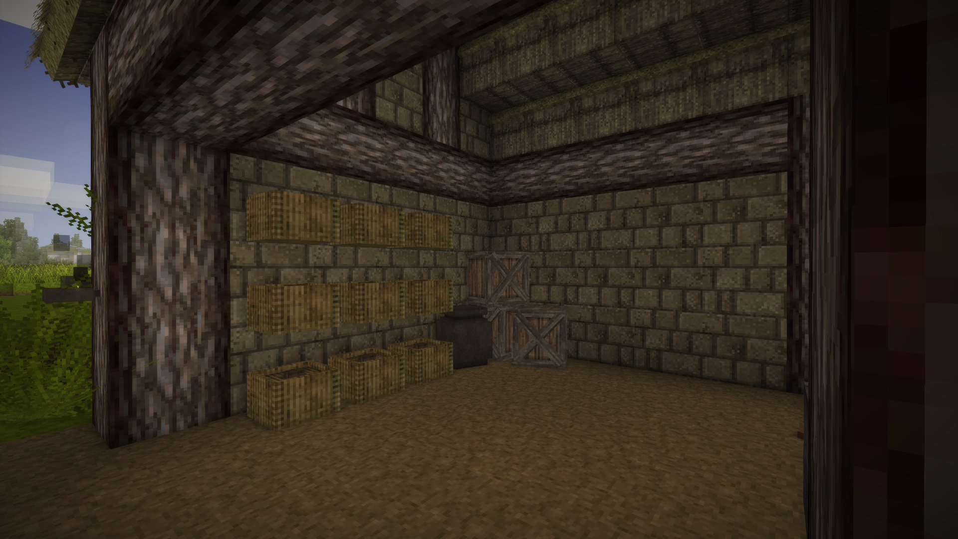 It is just temporary build but it works, and feels much better than just a hole in a ground. Now I just need to find a good amount of copper and create more advanced tools. After that I can build a proper buildings and get rid of these ones
