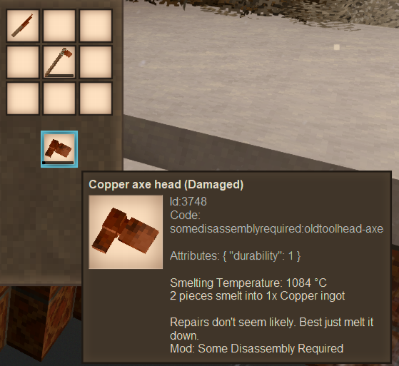 Hi, I've having trouble understanding why the output items of some of my recipes are having the "durability" attribute added to them. Here's an example of what I mean: And the code for the recipe: Also something of note, the durability attribute is only added if the item being consumed (the copper axe in this case) has the durability attribute itself. If anyone knows what causes this or knows how to remove attributes from output items please let me know!